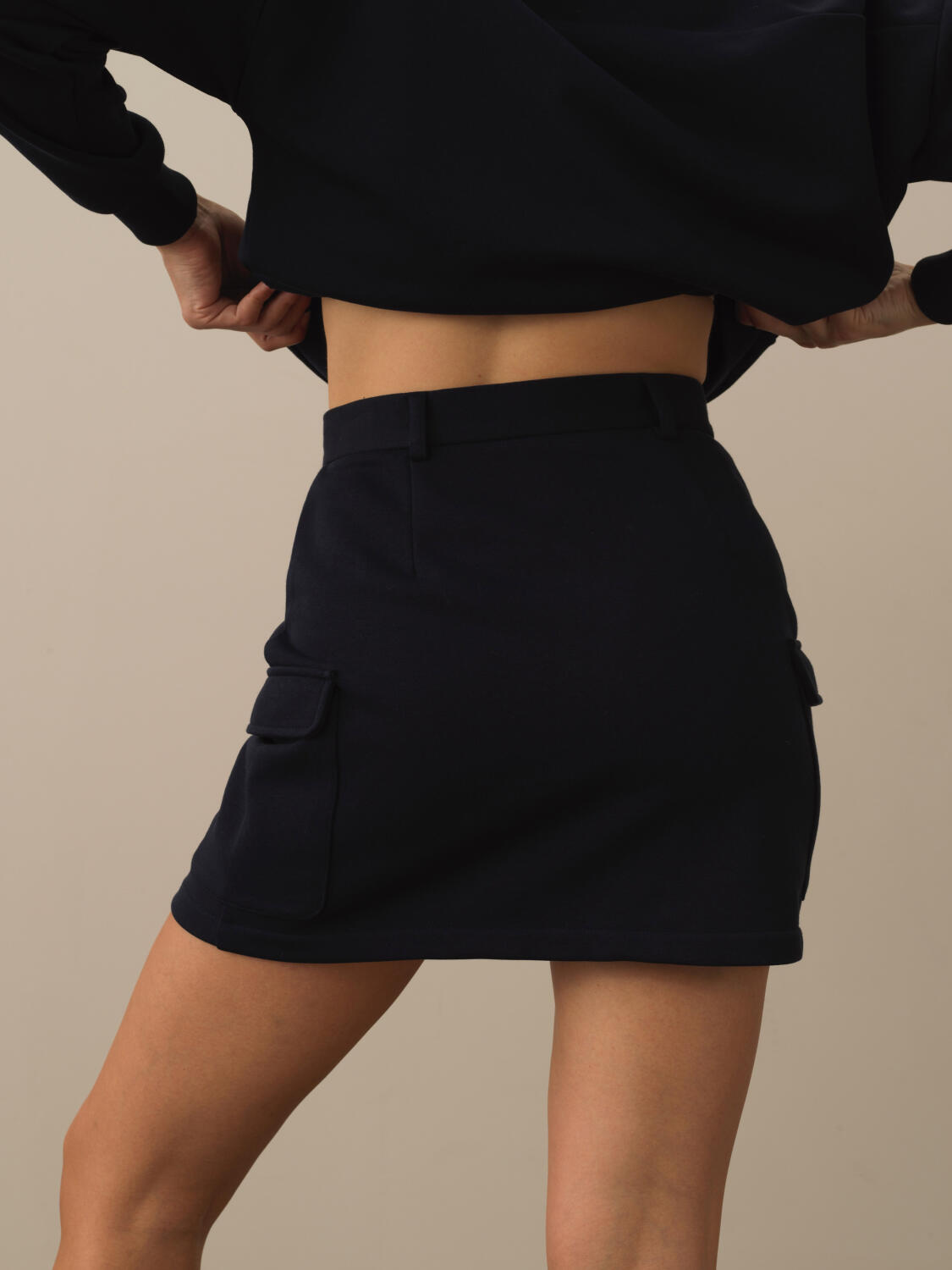 Navy Blue Flexible Textured Oversize Skirt - Xint