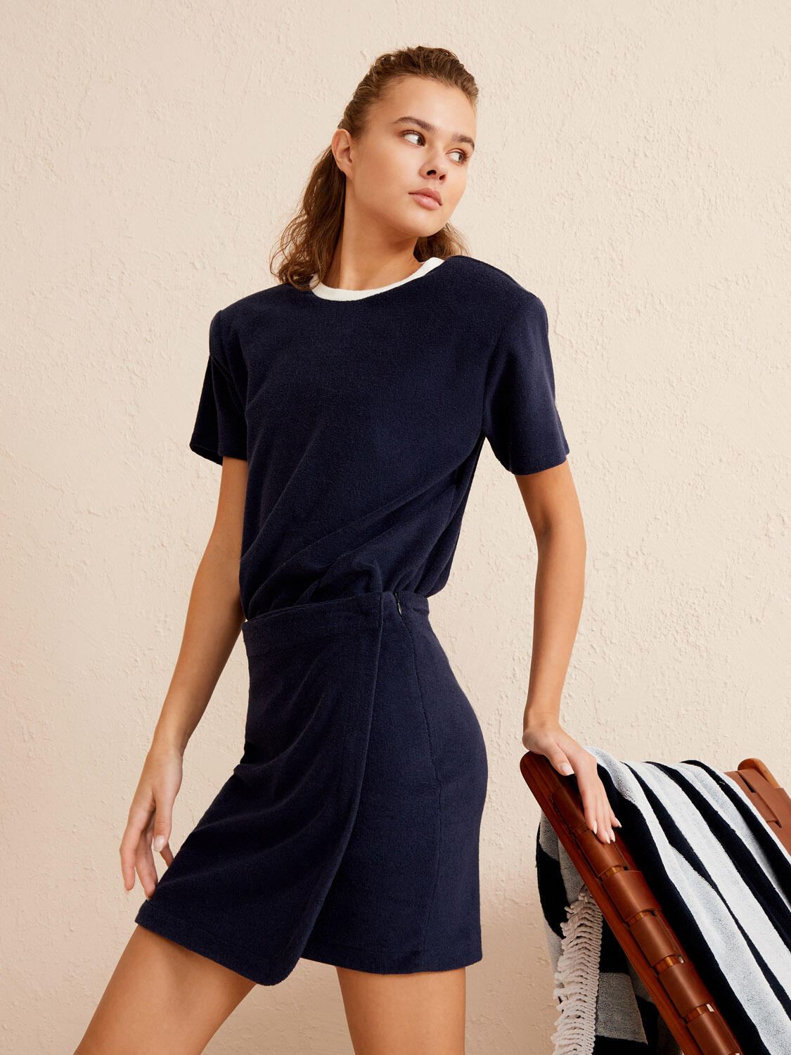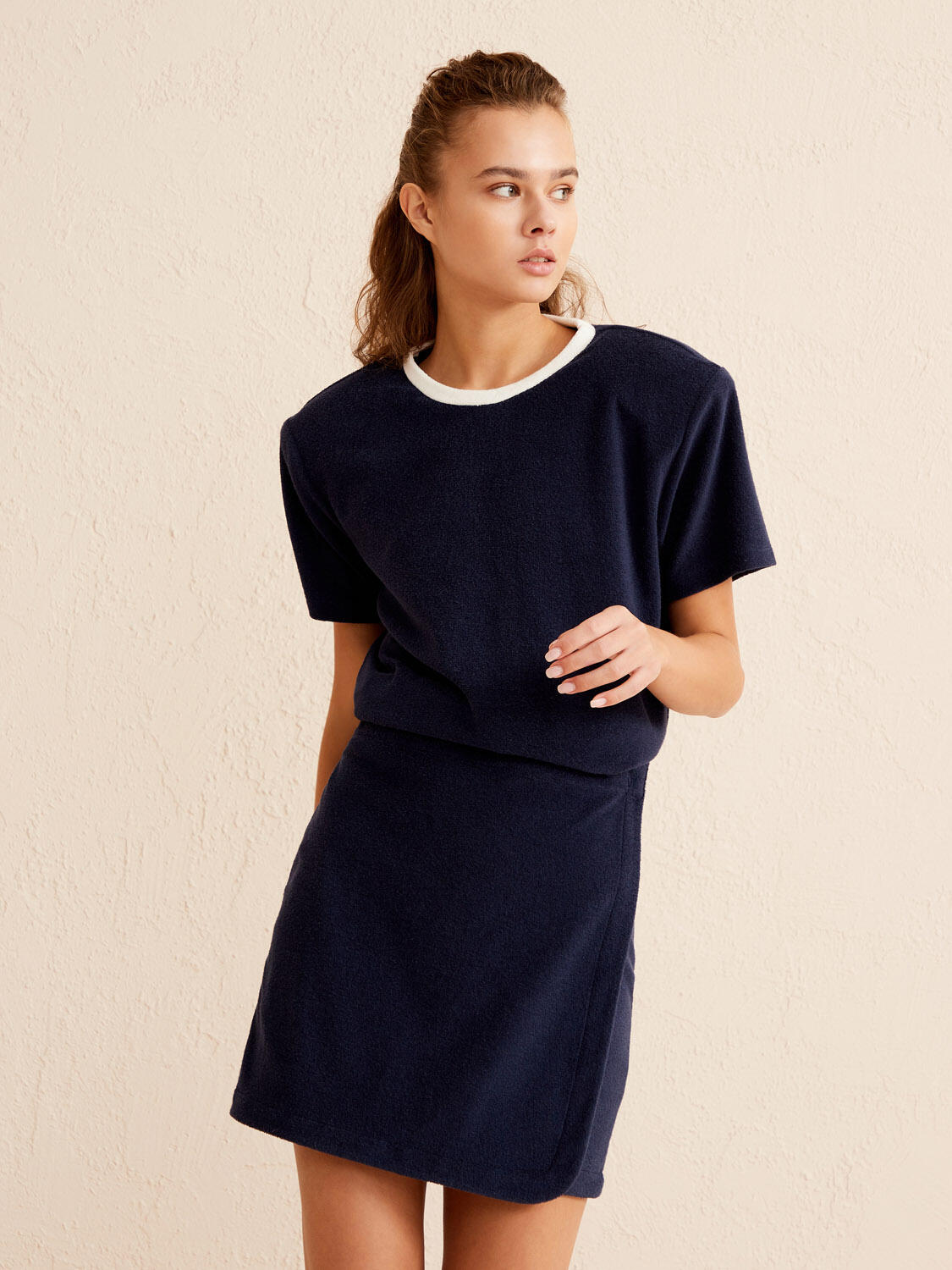 Lacivert Regular Fit Pamuklu Havlu Etek