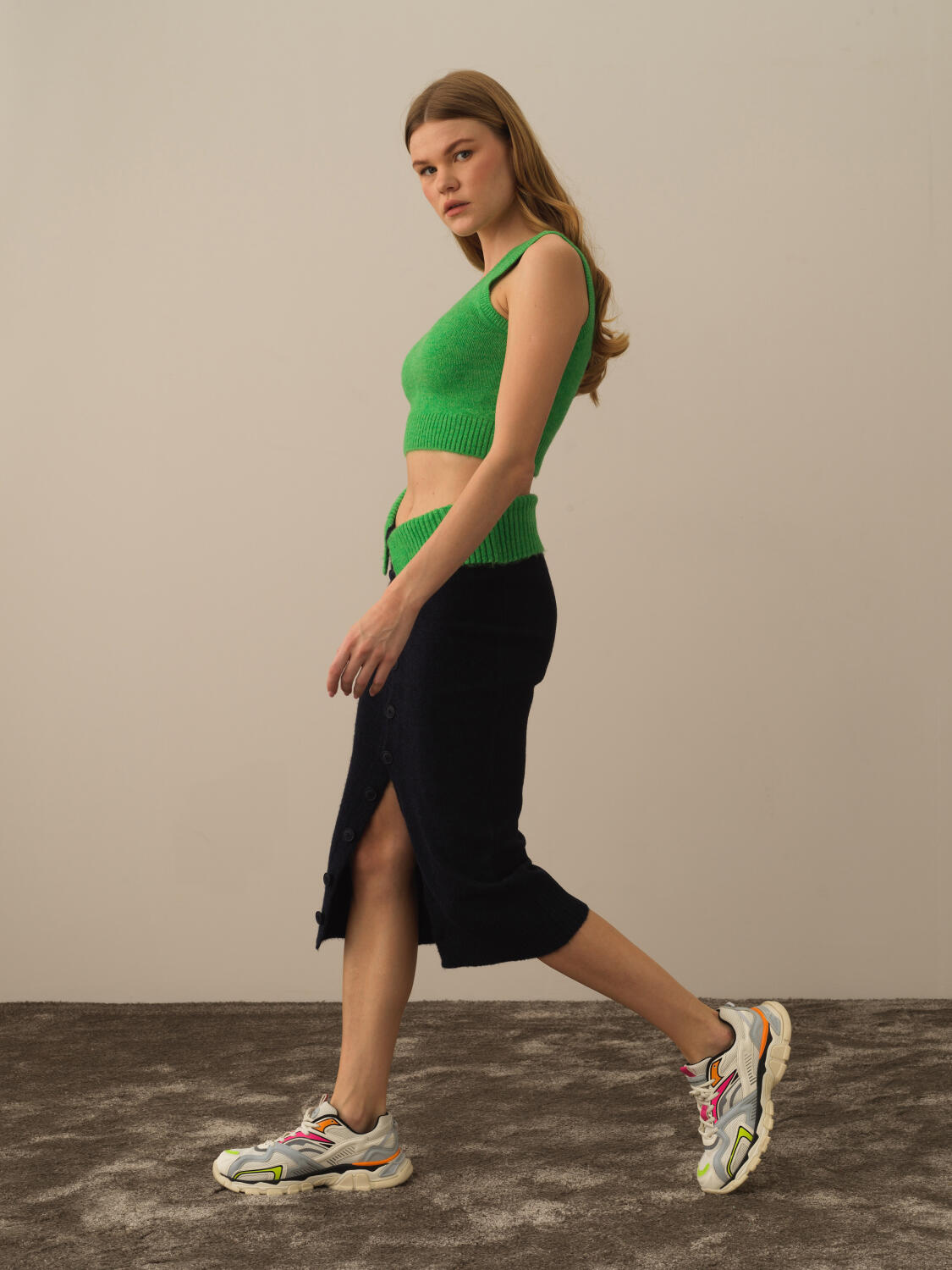 Navy Blue Flexible Textured Oversize Skirt - Xint