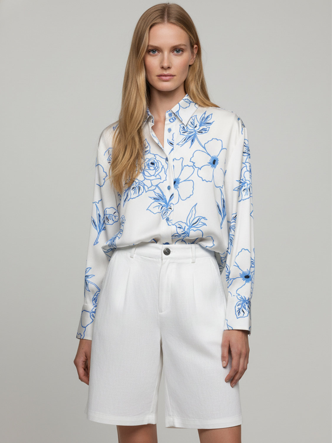 Beyaz Pamuk Dokulu Oversize Gömlek