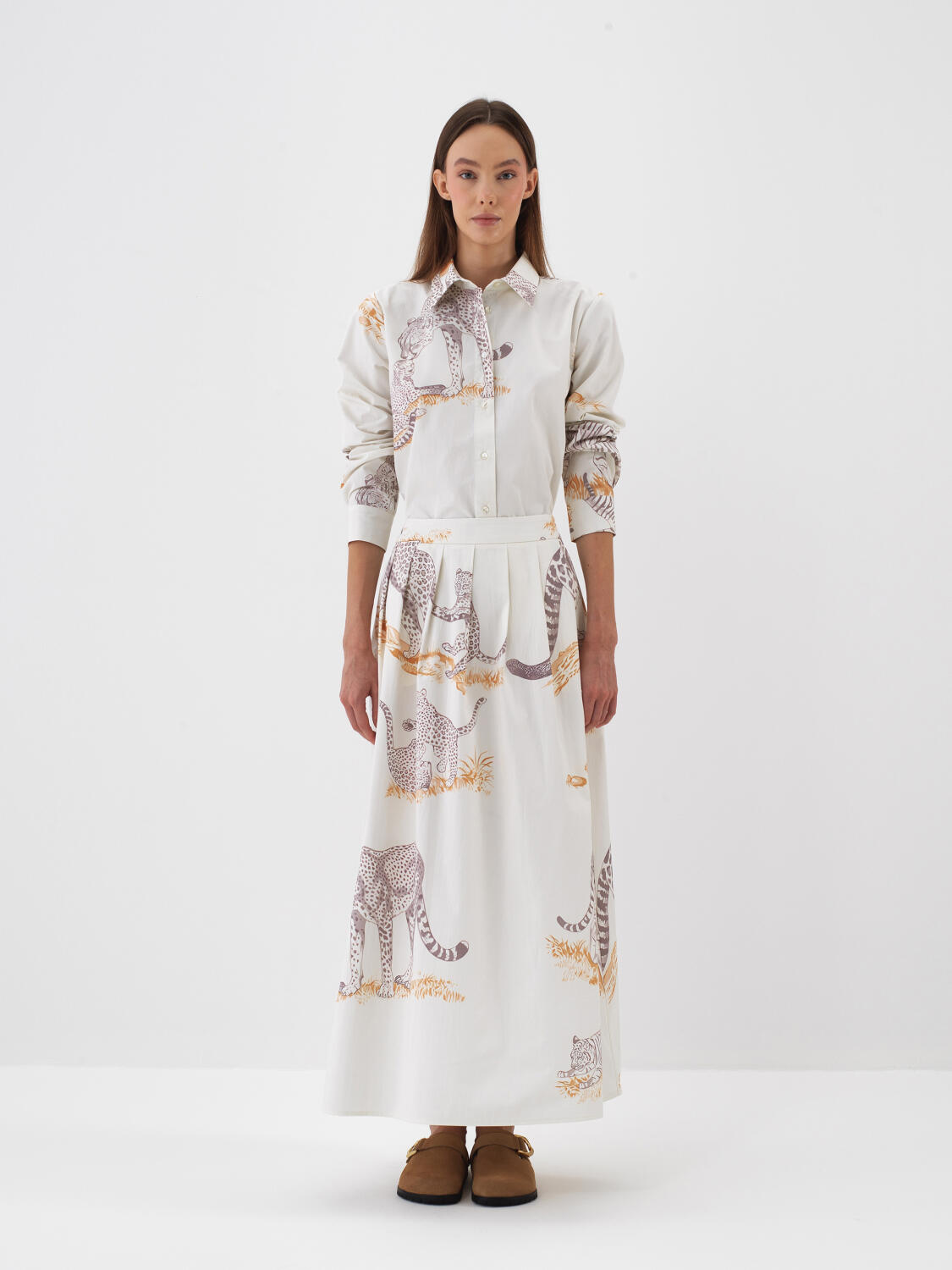 Ekru Pamuk Dokulu Regular Fit Etek - Xint