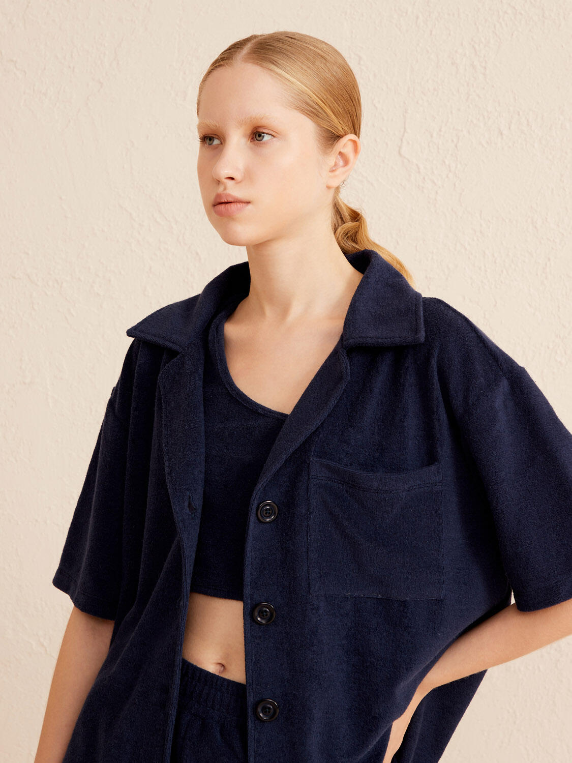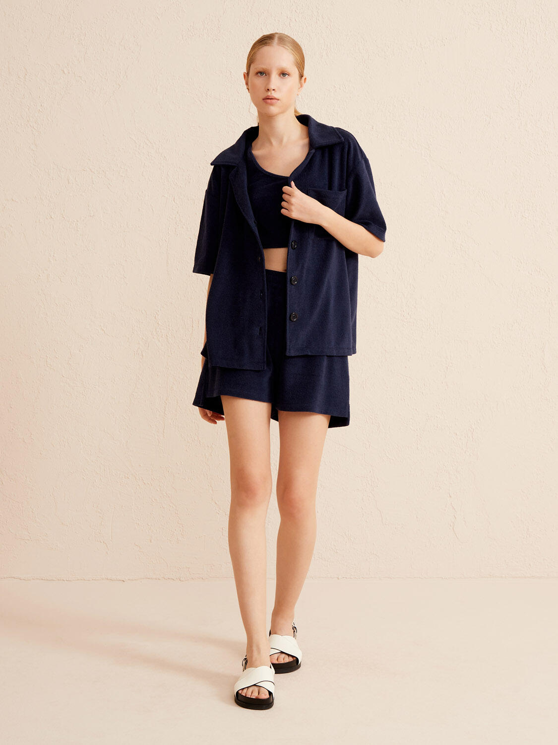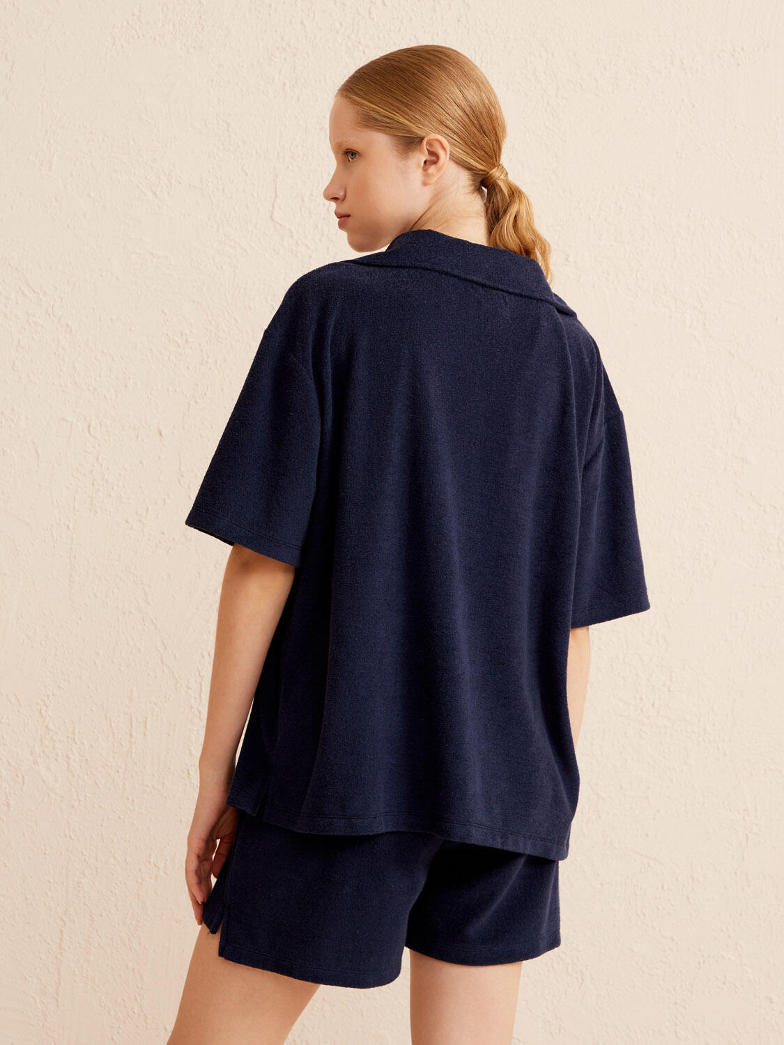 Lacivert Oversize Pamuklu Havlu Gömlek