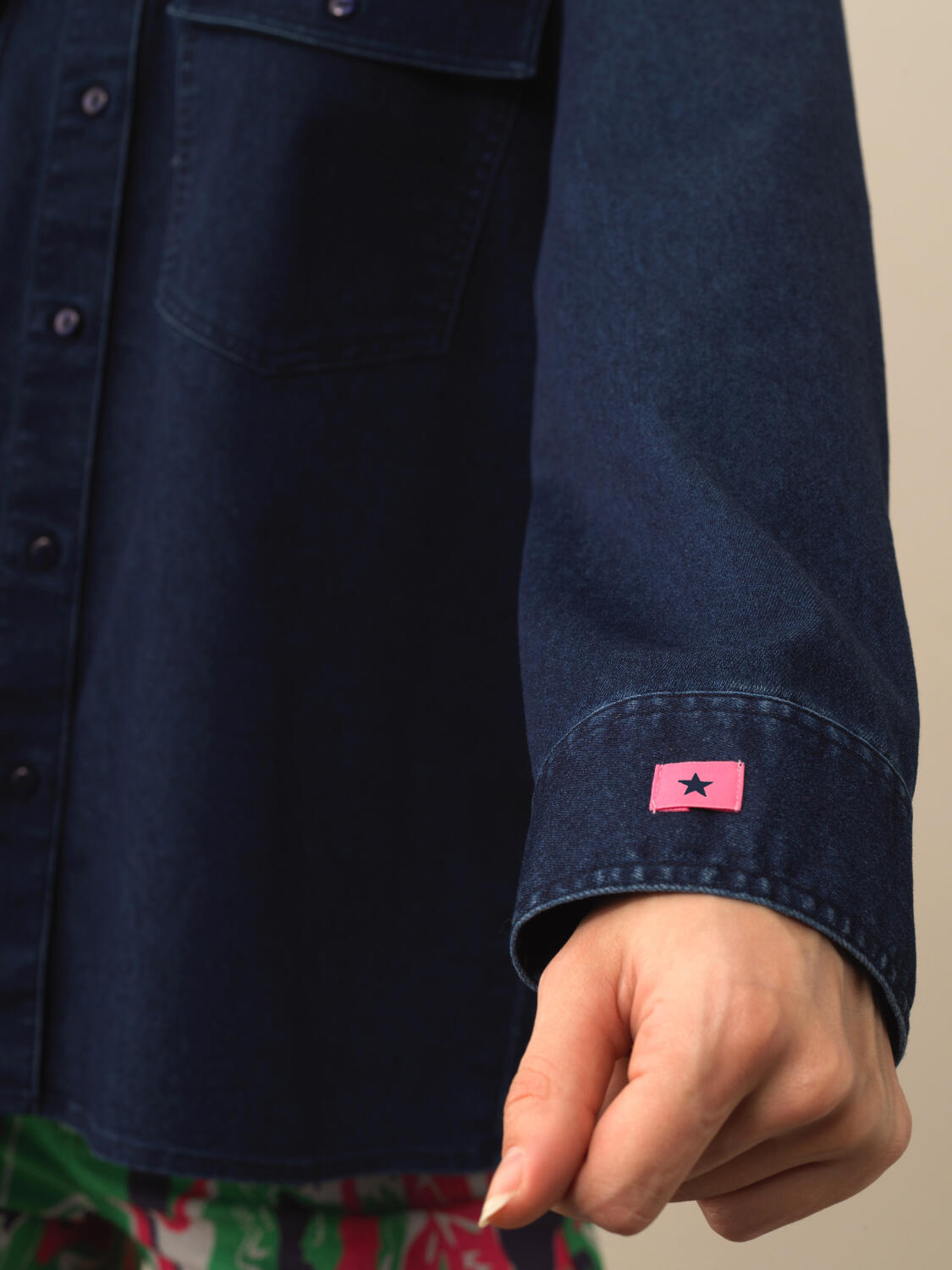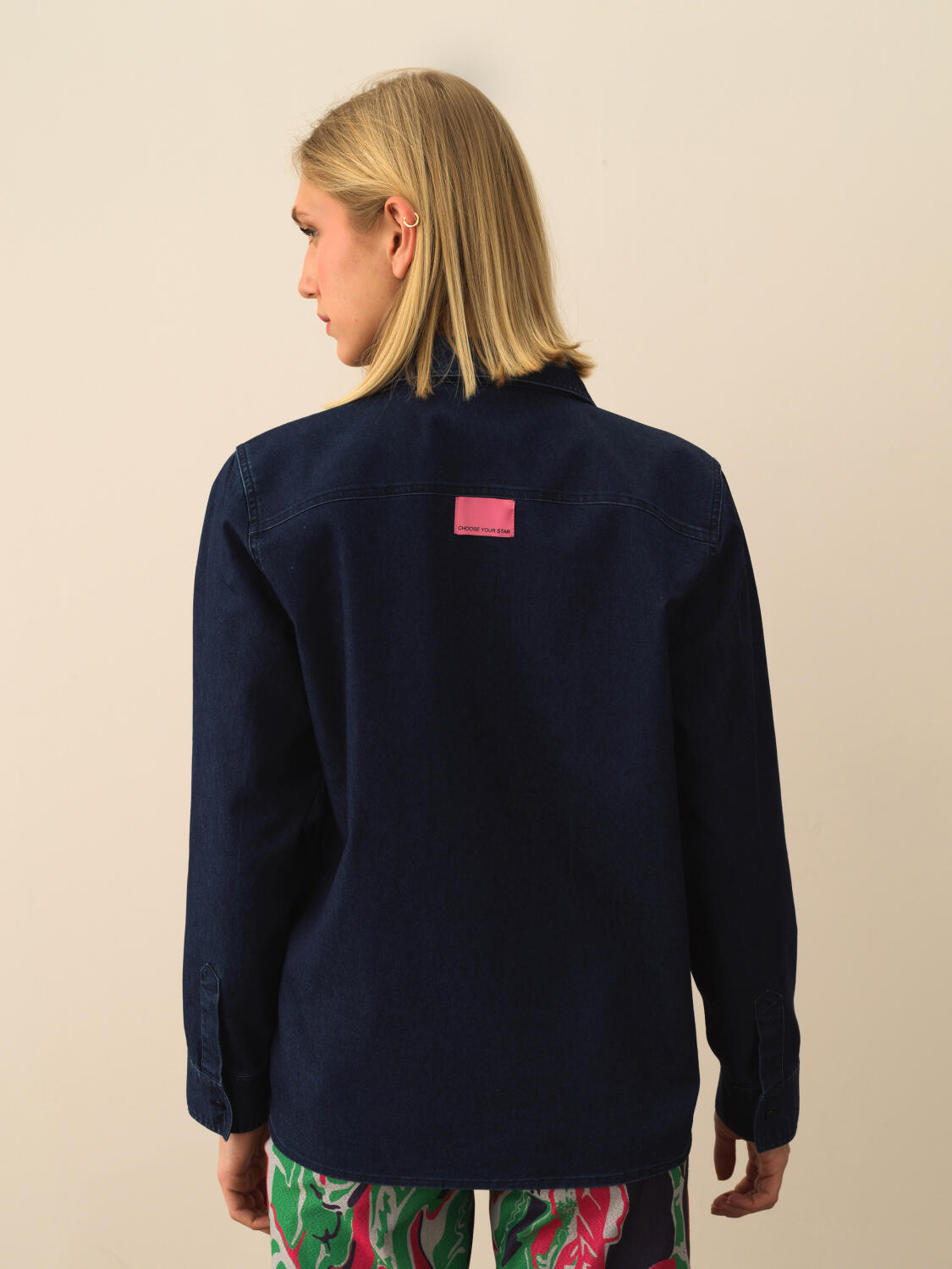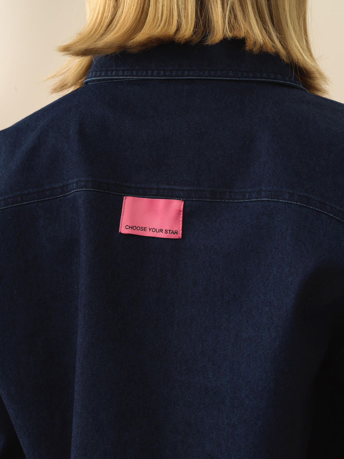 Lacivert Pamuk Dokulu Oversize Gömlek
