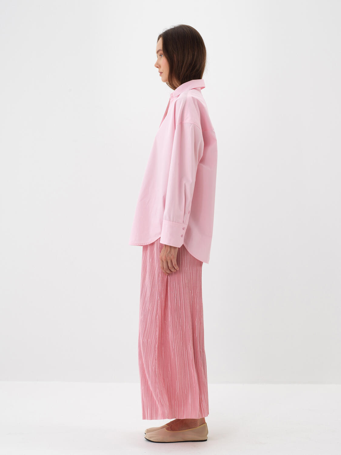 Pembe Pamuk Dokulu Oversize Gömlek - Xint
