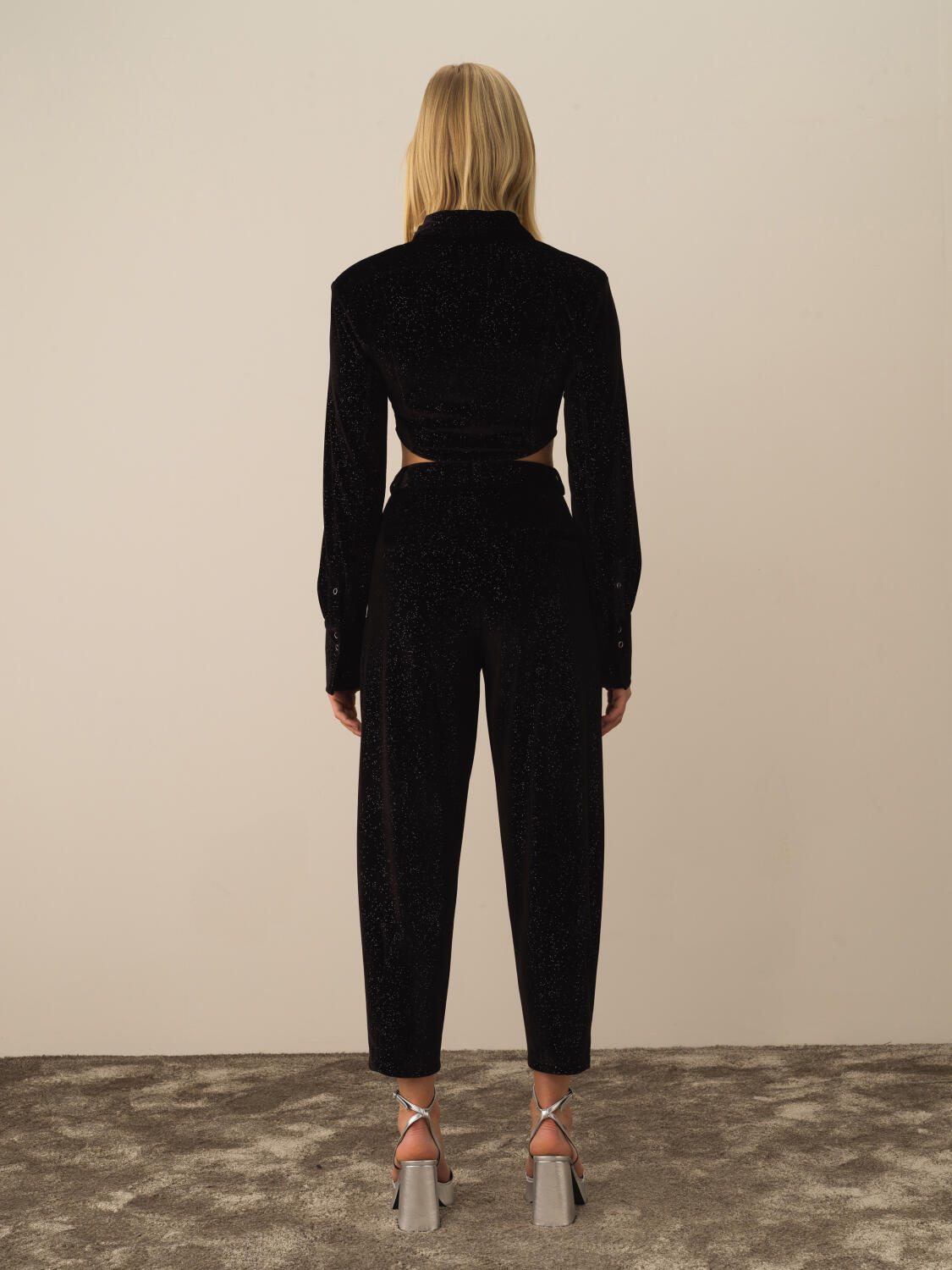 Siyah Esnek Dokulu Oversize Pantolon - Xint
