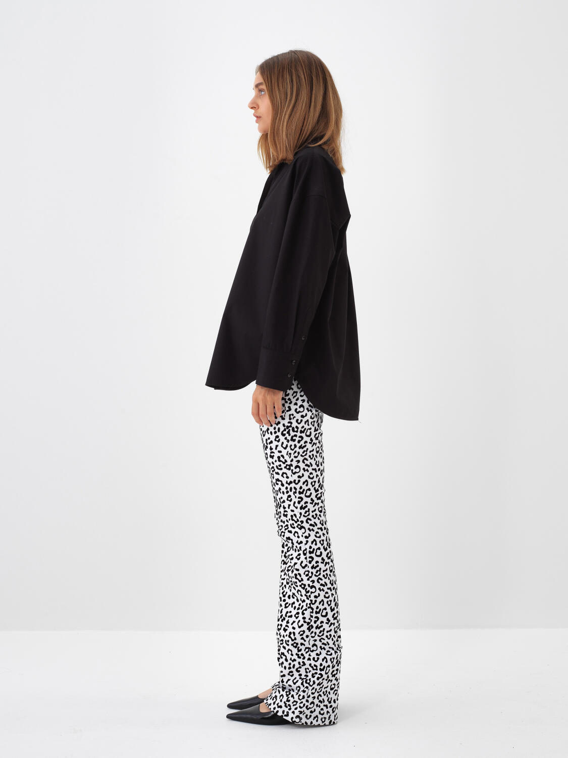 Siyah Pamuk Dokulu Oversize Gömlek - Xint