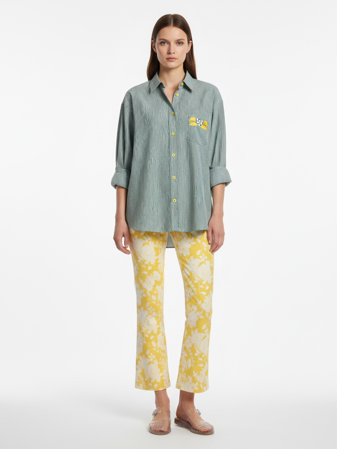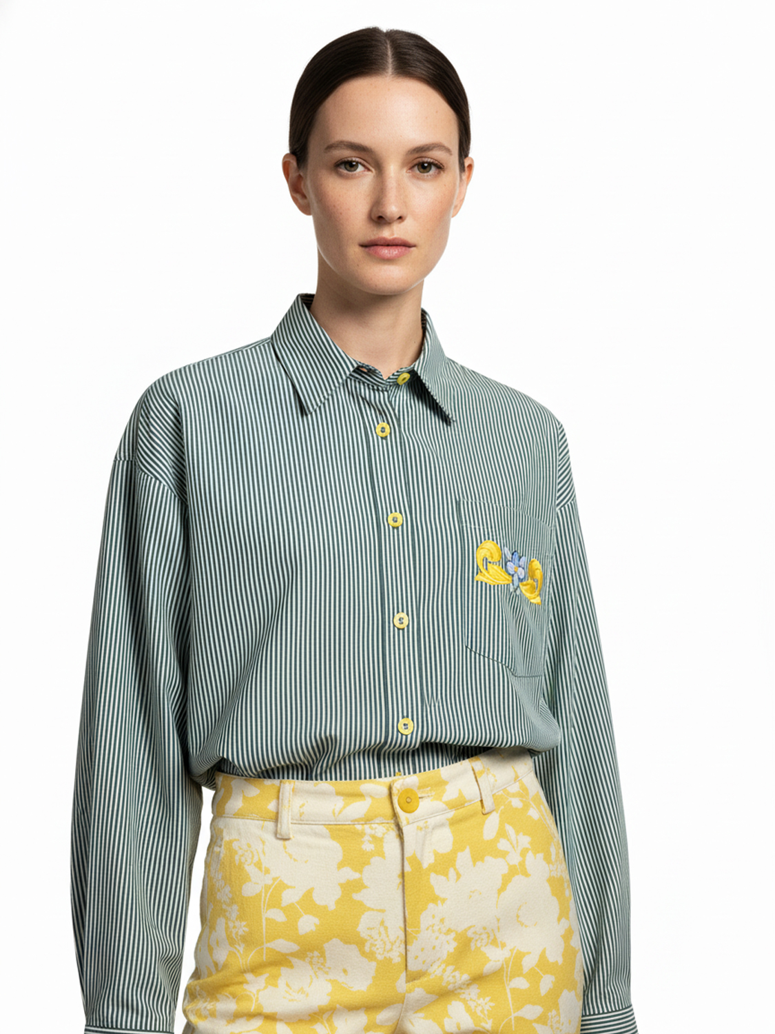 Yeşil Pamuk Dokulu Oversize Gömlek