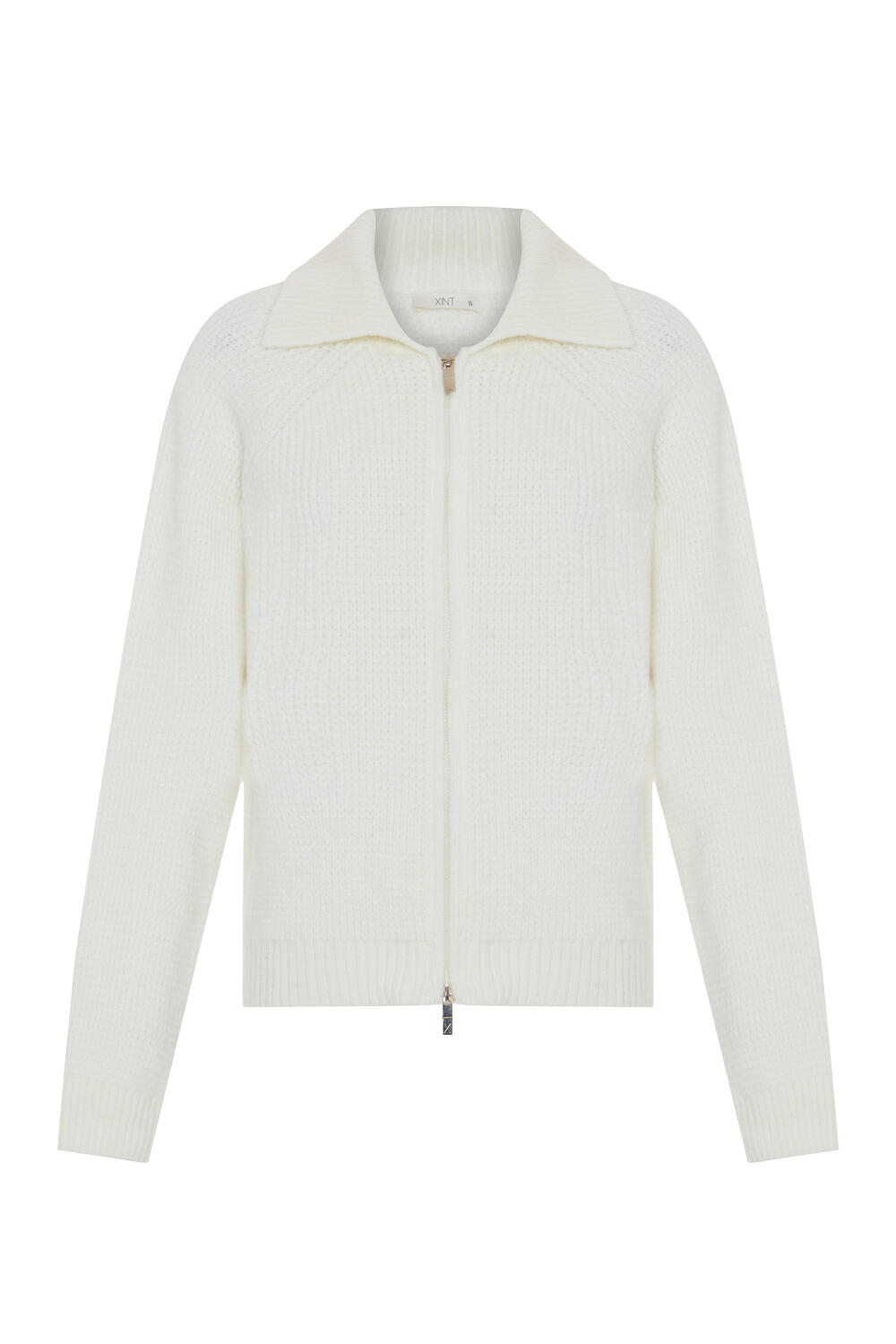 Ecru Natural Wool Textured Regular Fit Cardigan - Xint