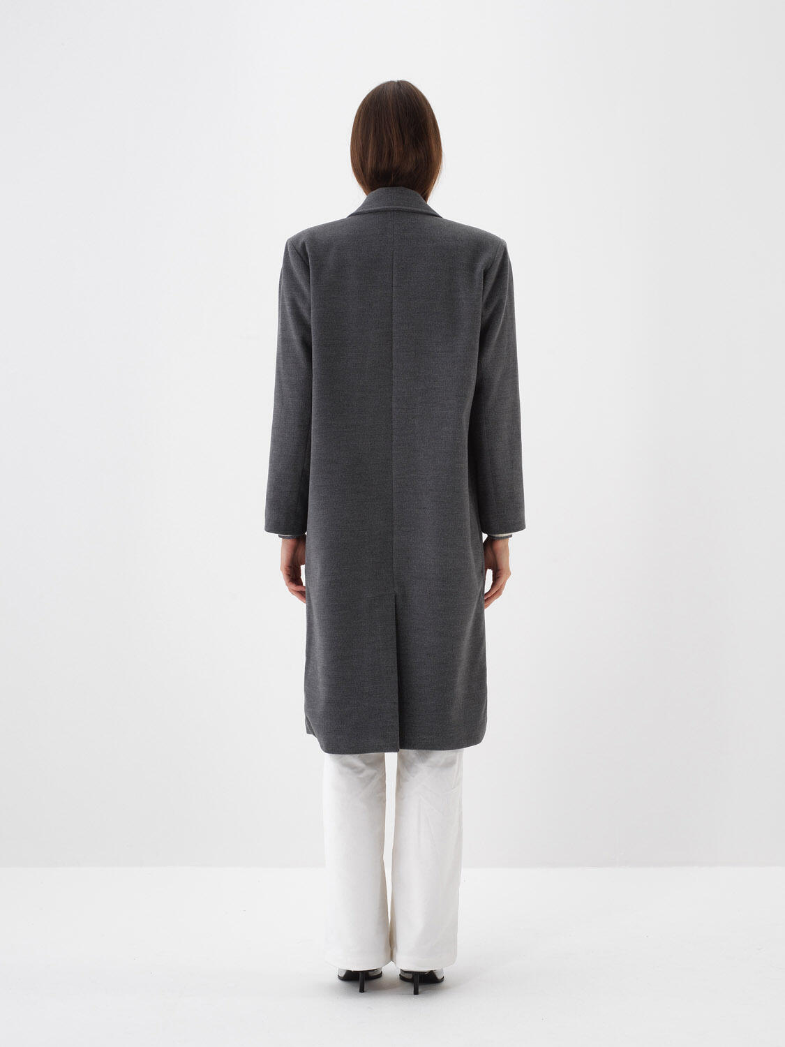 Koyu Gri Esnek Dokulu Oversize Kaban