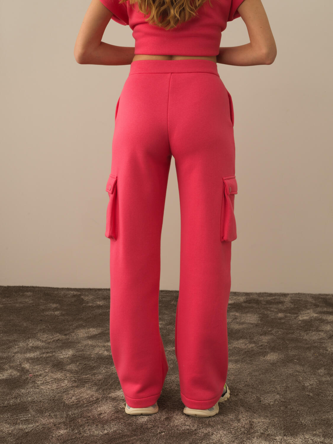 Pembe Pamuk Dokulu Oversize Kargo Pantolon