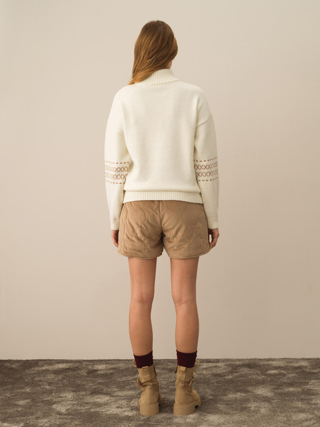 Ekru Pamuk Dokulu Oversize Kazak - Xint