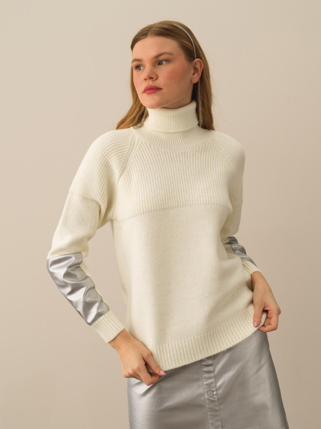 Ekru Pamuk Dokulu Oversize Kazak - Xint
