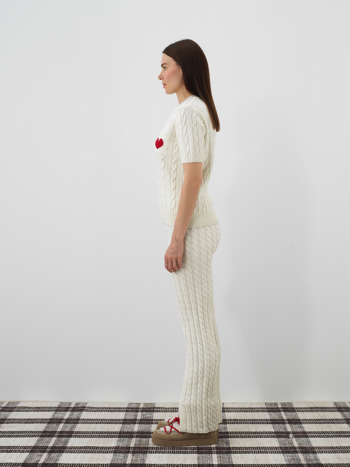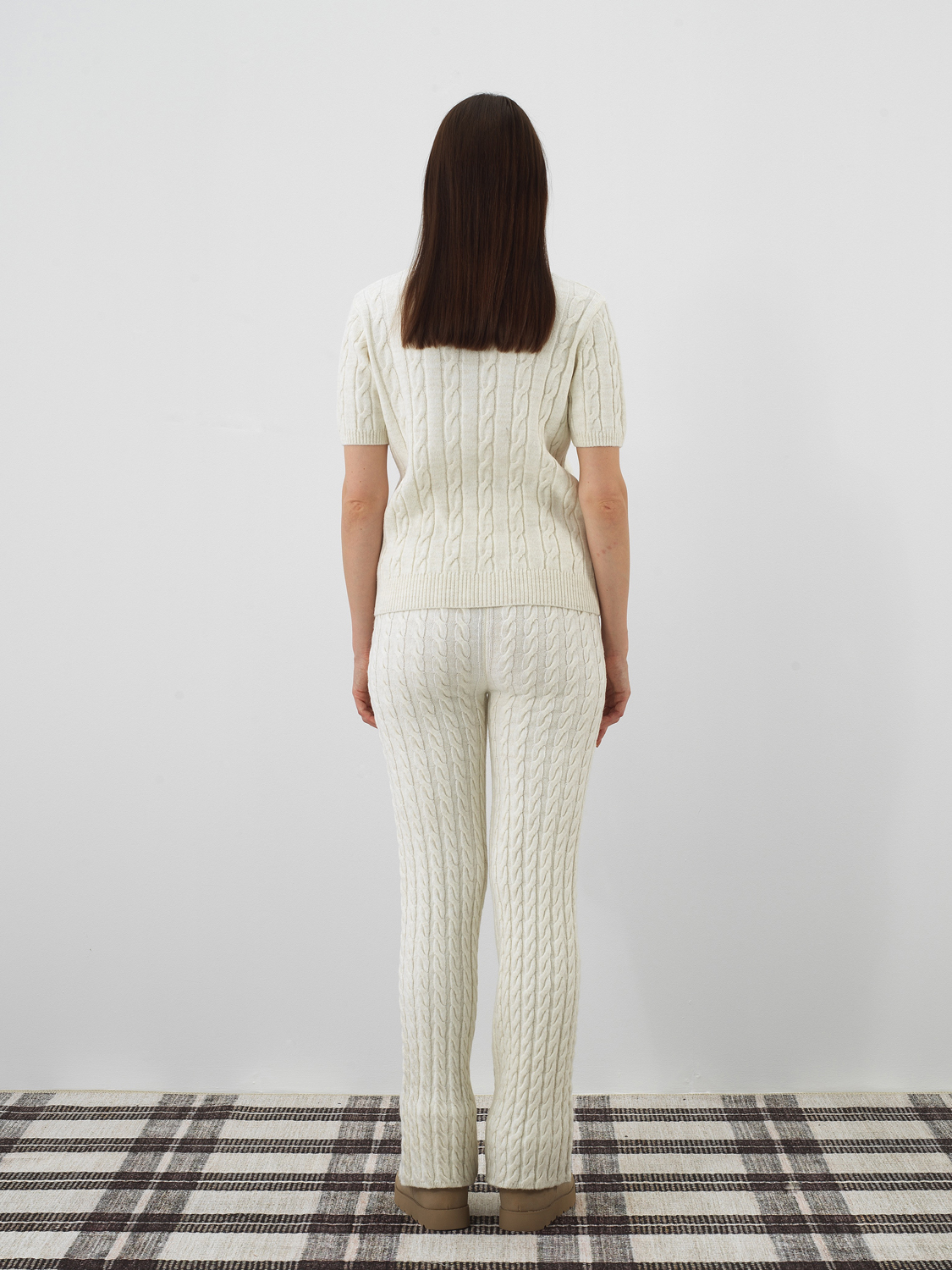 Ekru Doğal Yün Dokulu Oversize Pantolon - Xint