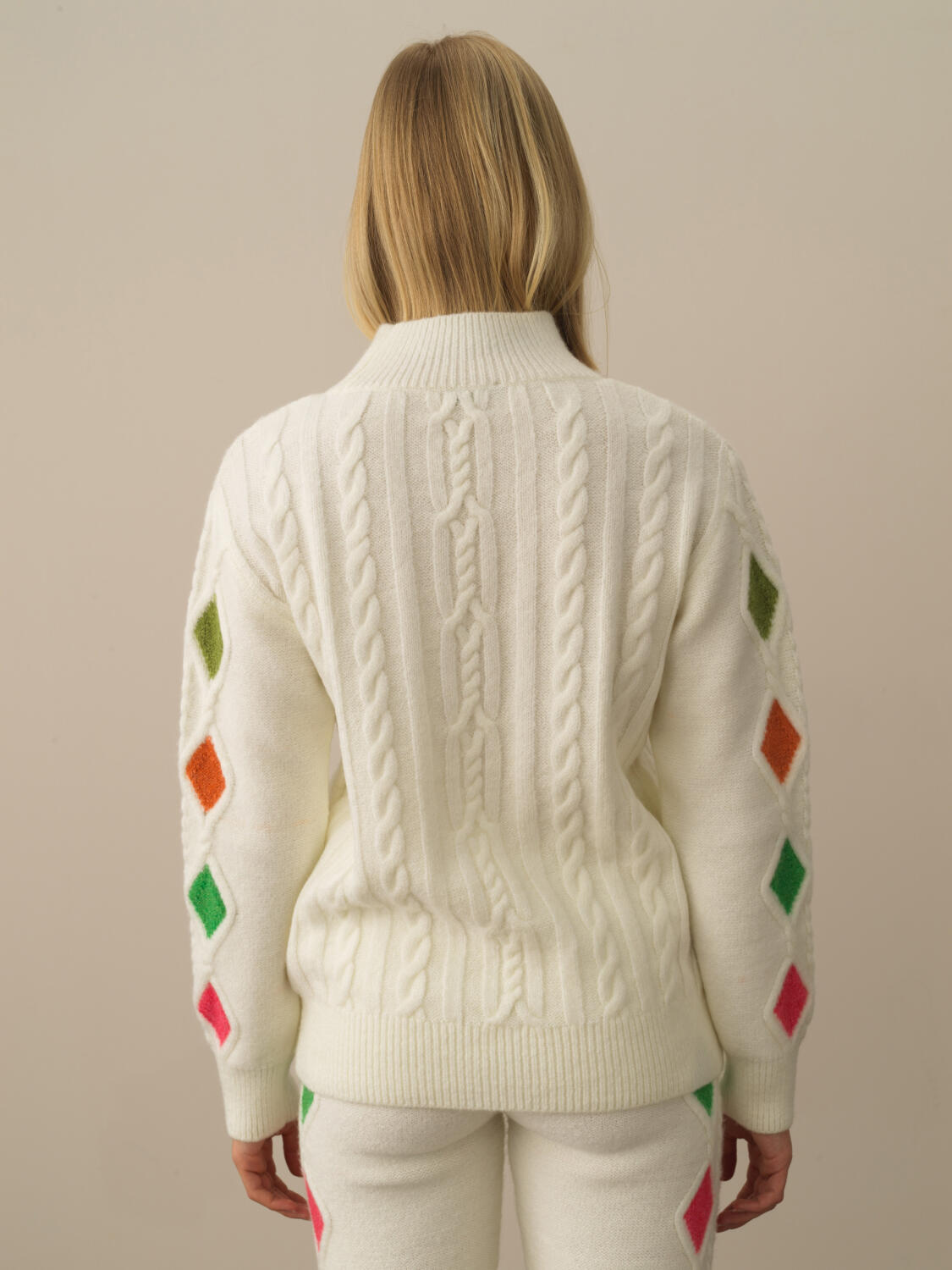 Ekru Pamuk Dokulu Oversize Kazak - Xint