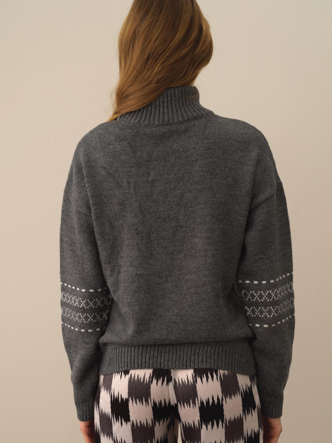 Koyu Gri Doğal Yün Dokulu Oversize Kazak