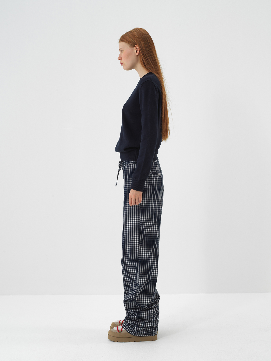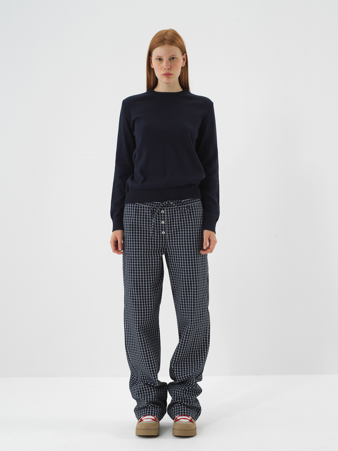 Lacivert Modern Ekose Oversize Pantolon - Xint