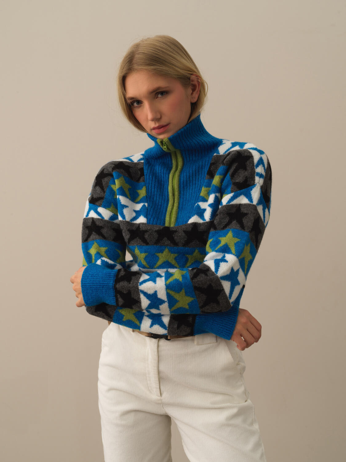 Mavi Lüks Pamuk Dokulu Oversize Kazak