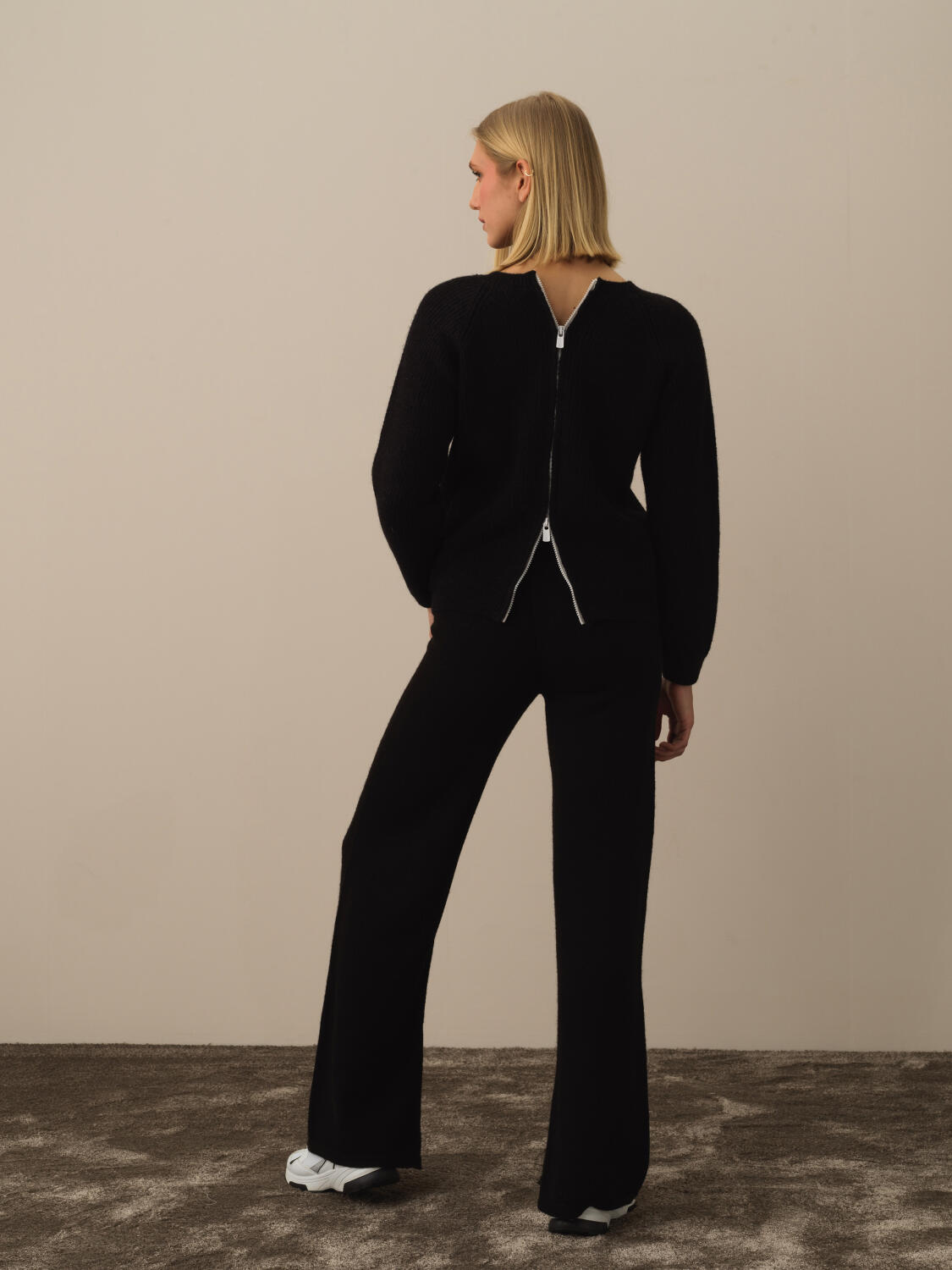 Siyah Doğal Yün Dokulu Regular Fit Kazak