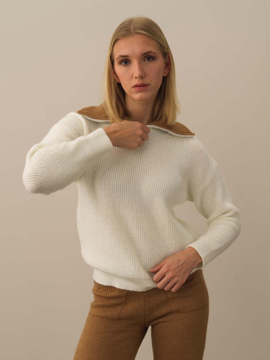 Ecru Natural Wool Textured Regular Fit Sweater - Xint