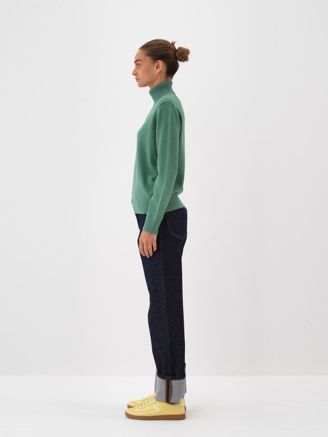 Yeşil Doğal Yün Dokulu Oversize Kazak