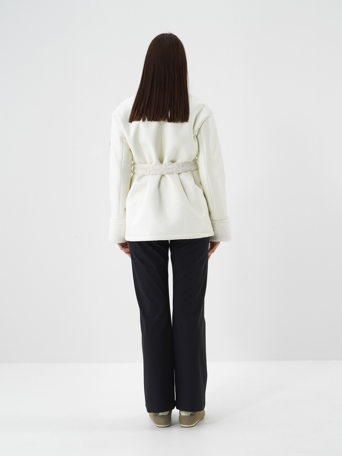 Ekru Deri Görünümlü Oversize Mont