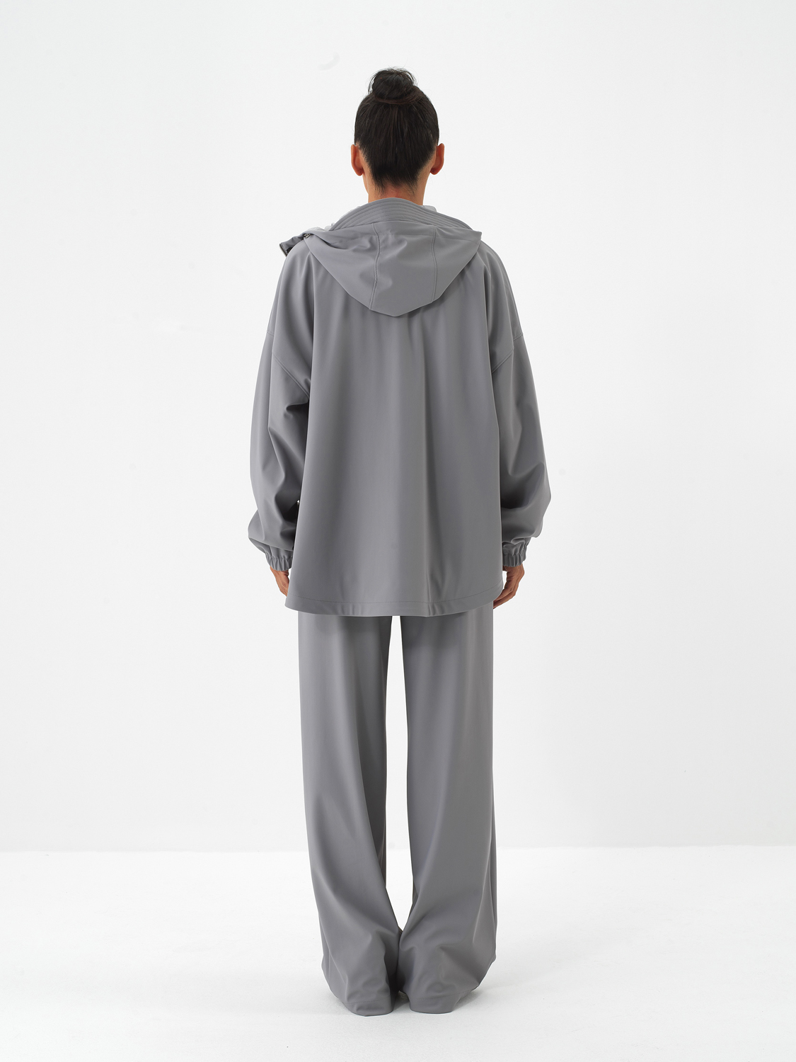 Gri Esnek Dokulu Oversize Mont - Xint