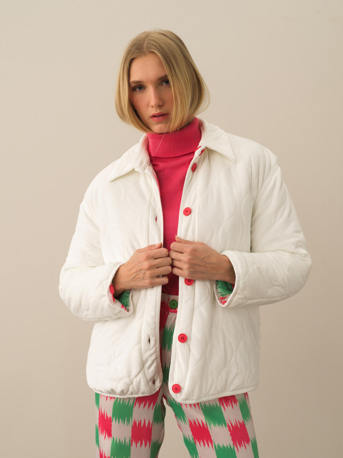 Beyaz Formunu Koruyan Oversize Mont - Xint