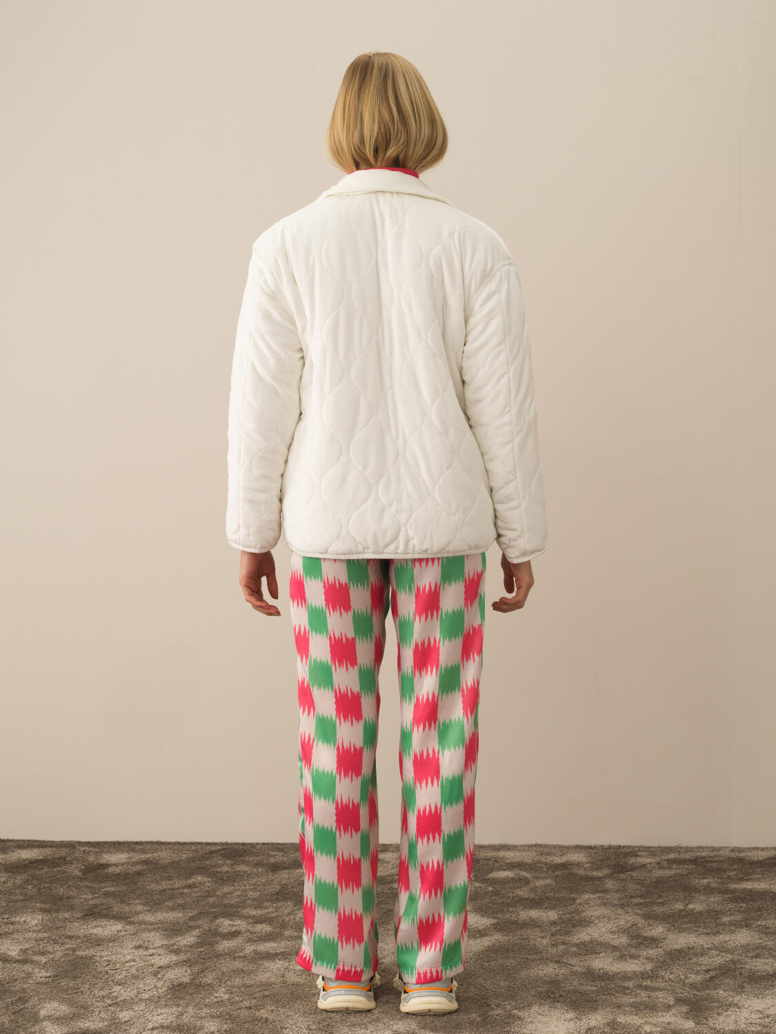 Yeşil Pamuk Dokulu Oversize Desenli Şişme - Xint