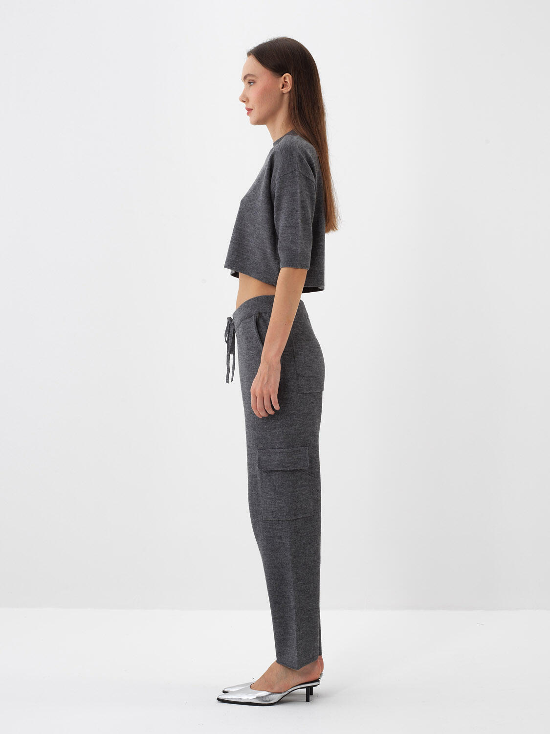 Antrasit Doğal Yün Dokulu Regular Fit Pantolon