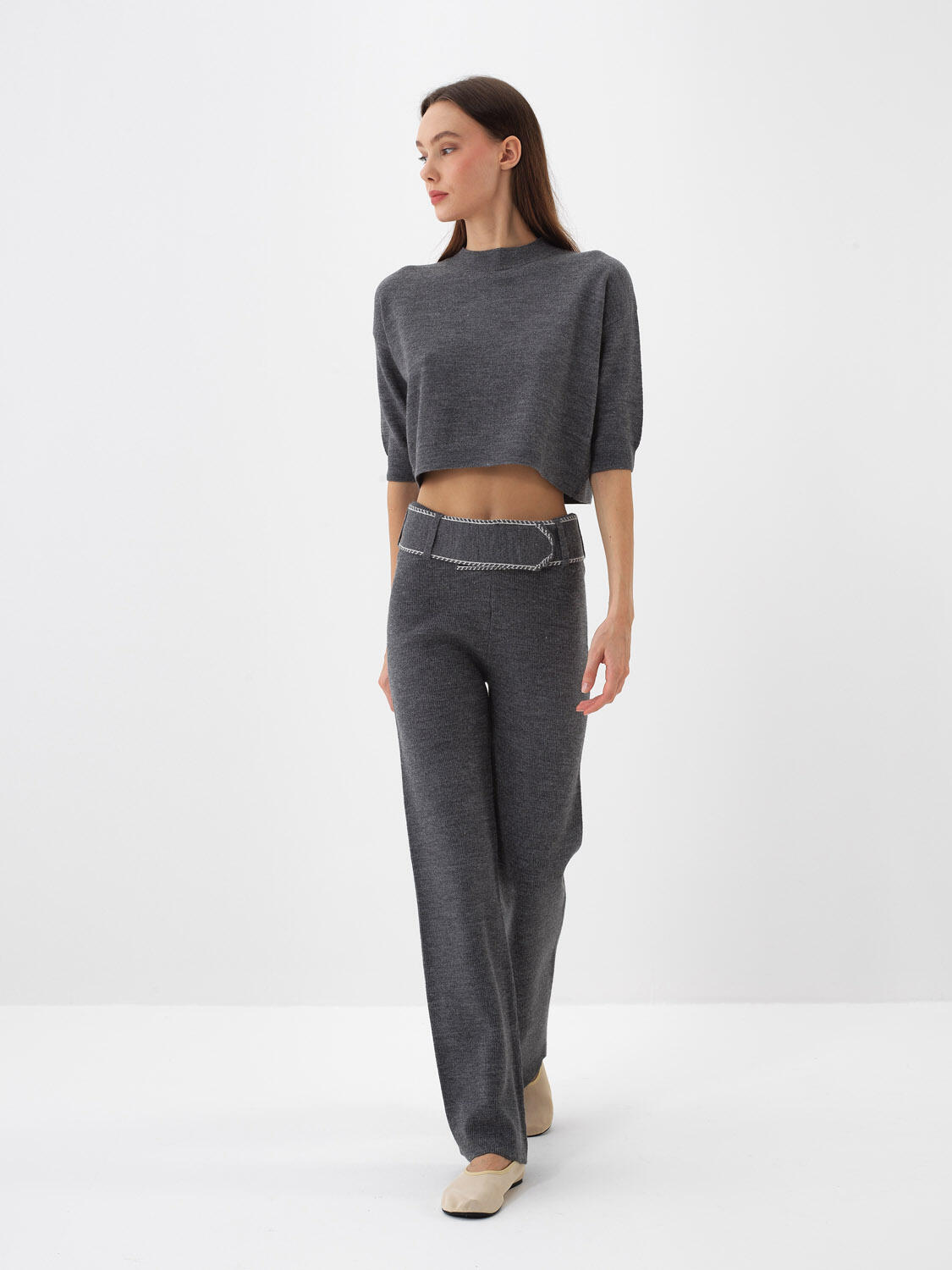 Antrasit Doğal Yün Dokulu Regular Fit Pantolon