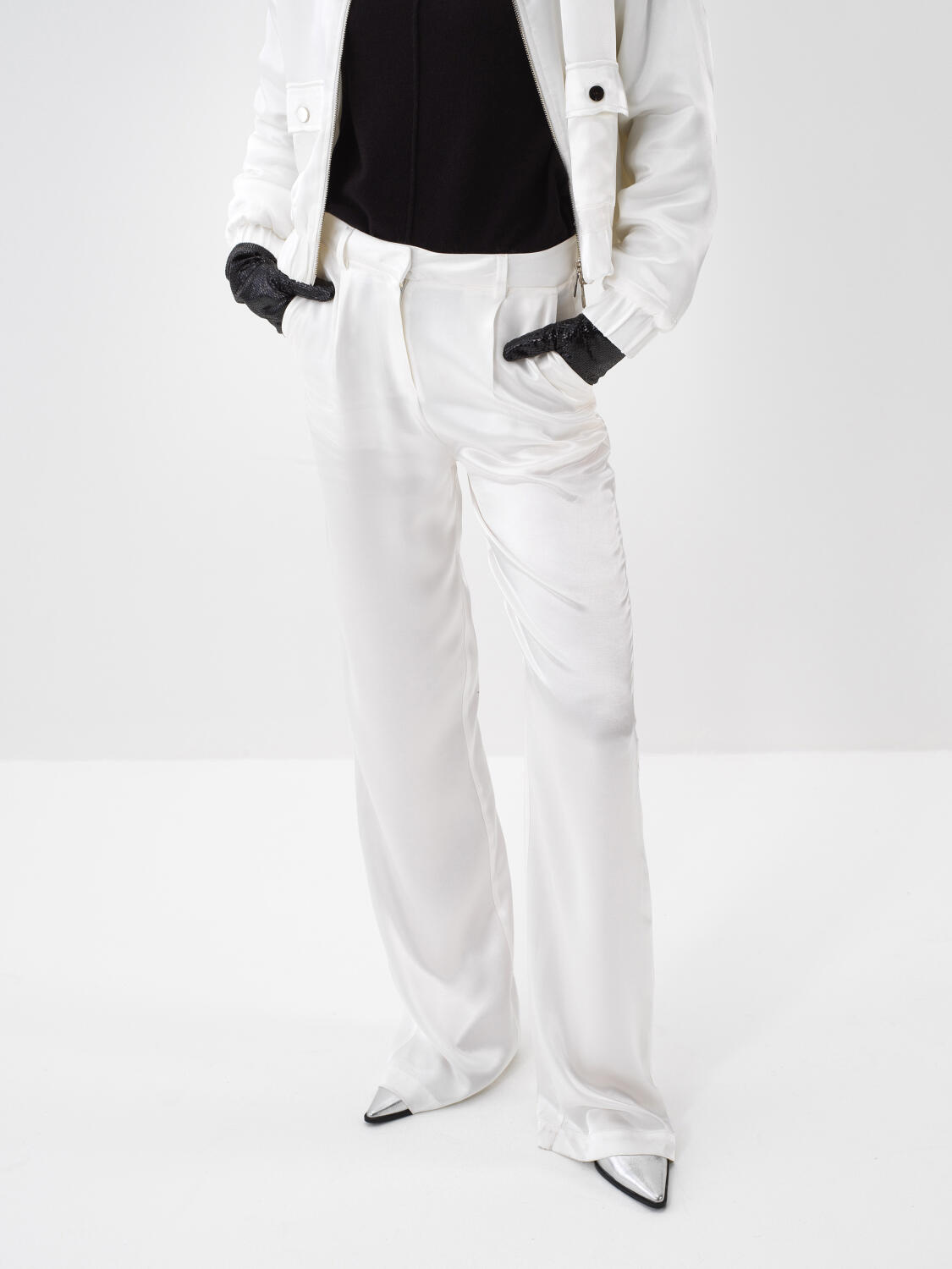 Beyaz İpeksi Saten Oversize Pantolon