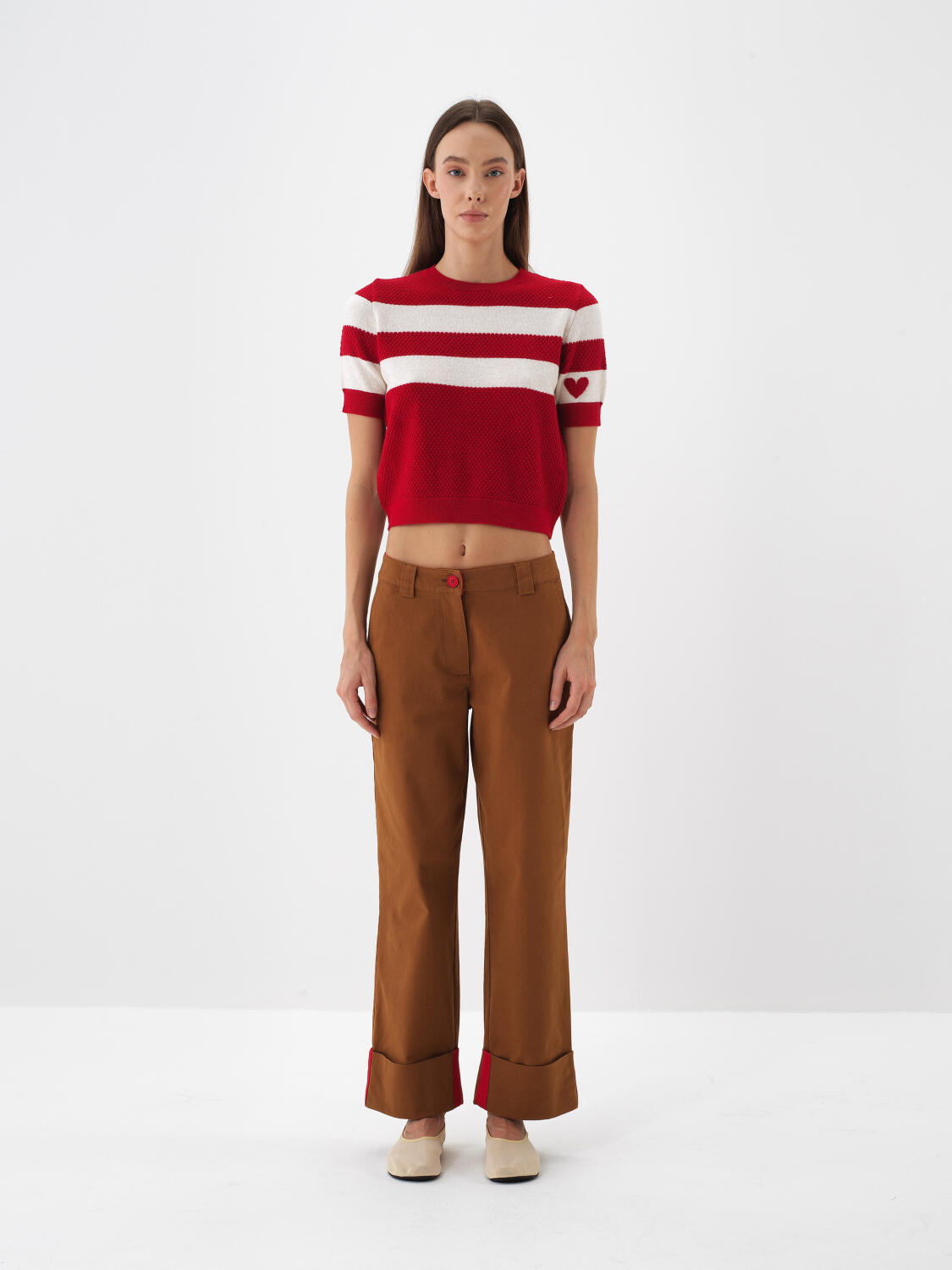 Kırmızı Esnek Dokulu Regular Fit Pantolon - Xint