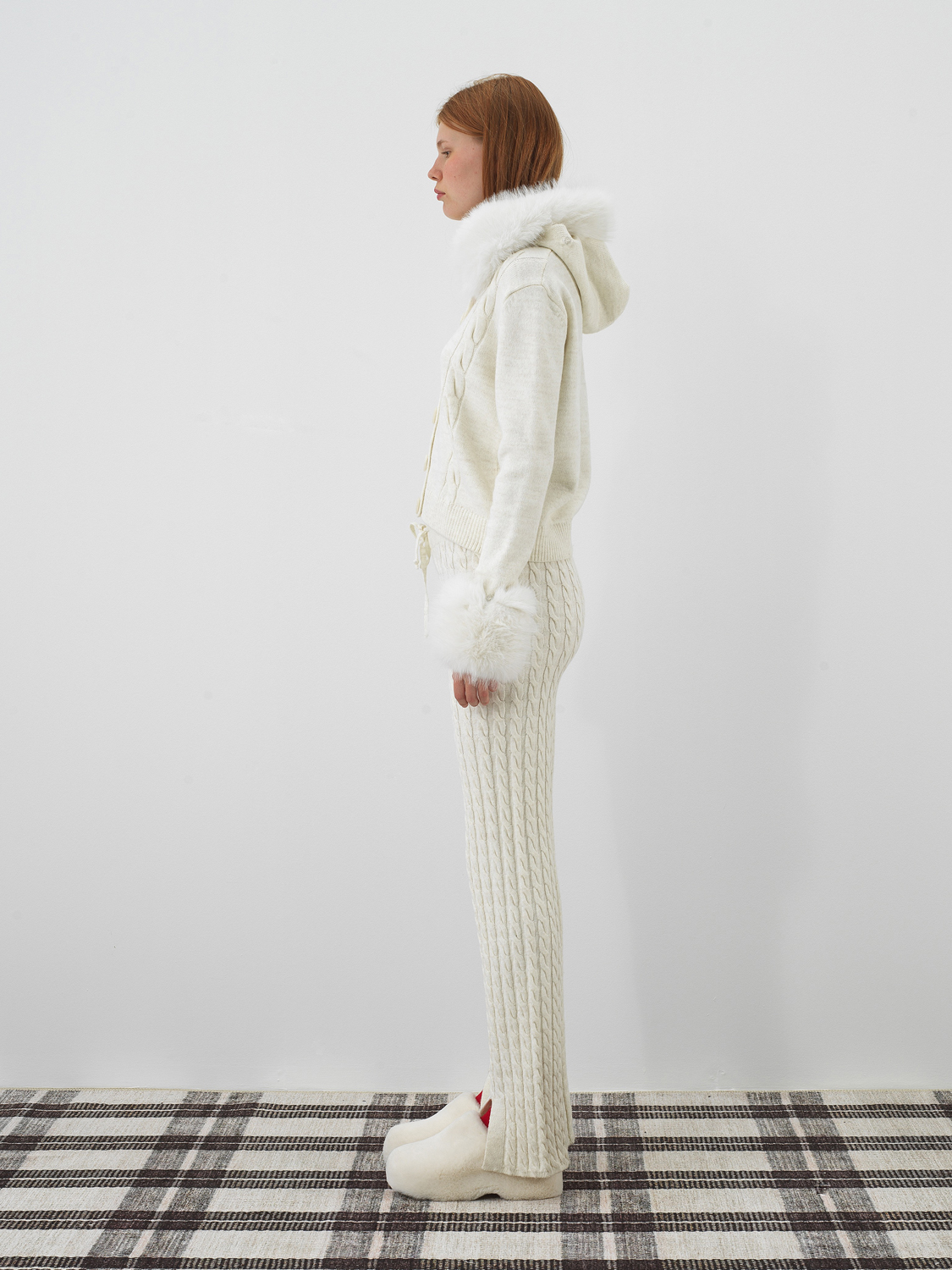 Ekru Doğal Yün Dokulu Oversize Pantolon - Xint