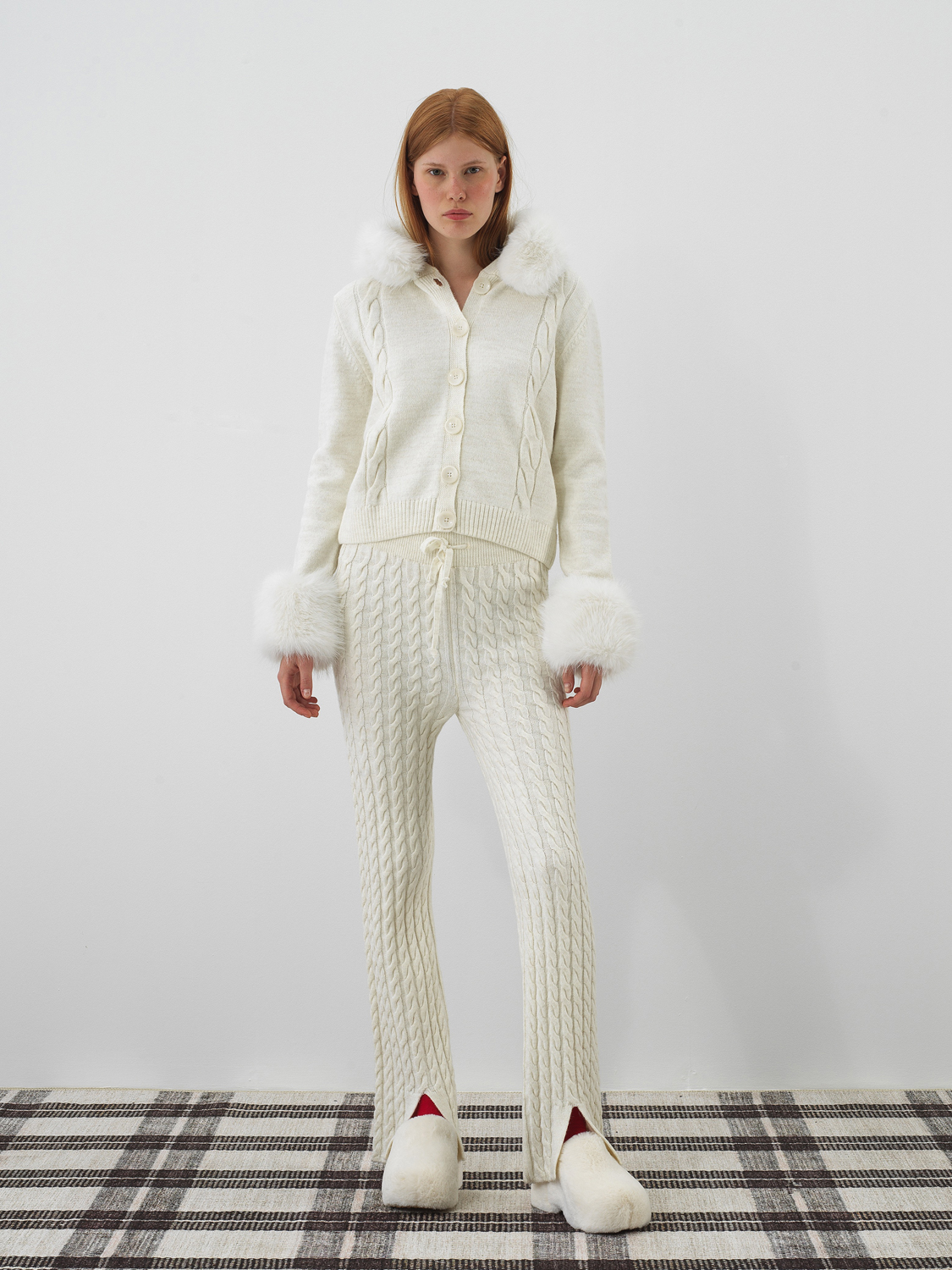 Ekru Doğal Yün Dokulu Oversize Pantolon