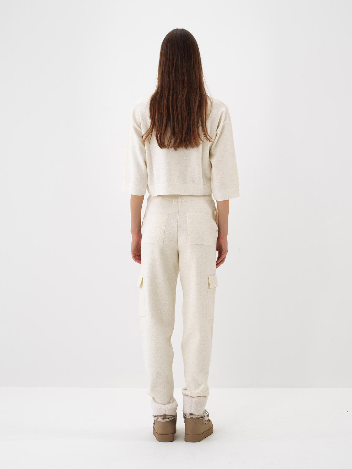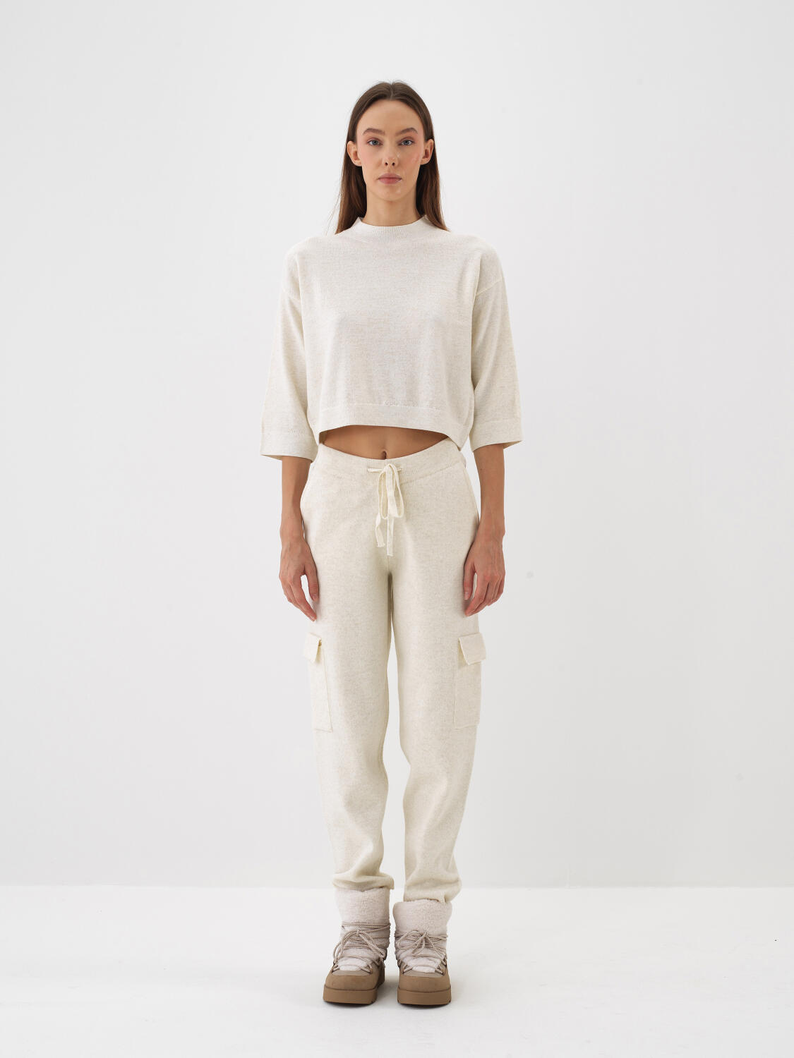 Ekru Doğal Yün Dokulu Regular Fit Pantolon