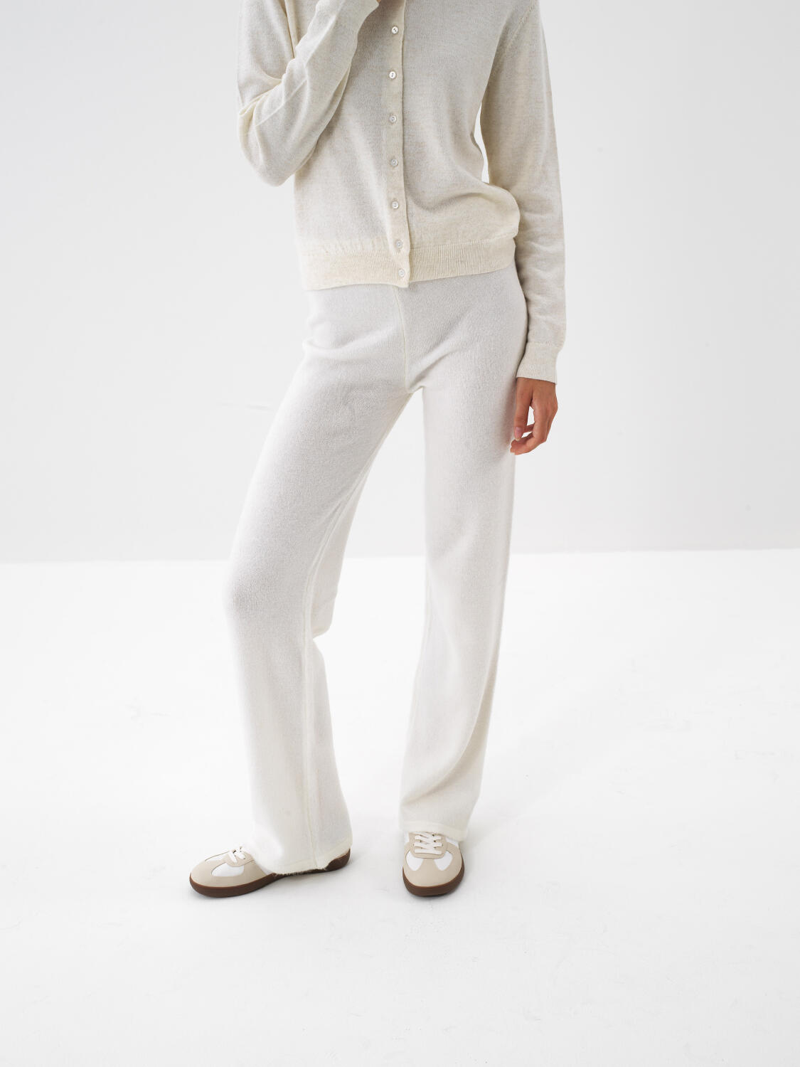 Ekru Yumuşak Dokulu Oversize Pantolon