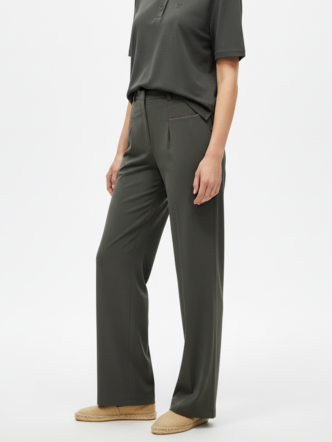 Haki Doğal Akışlı Oversize Pantolon