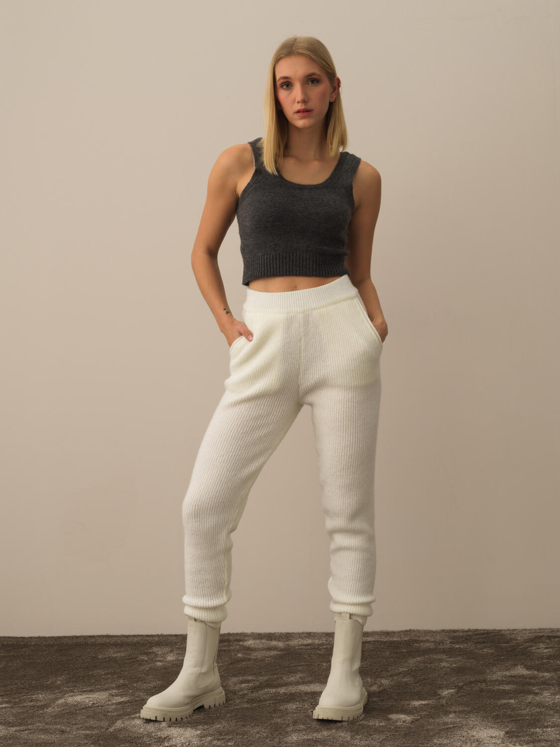 Ekru Doğal Yün Dokulu Oversize Pantolon - Xint
