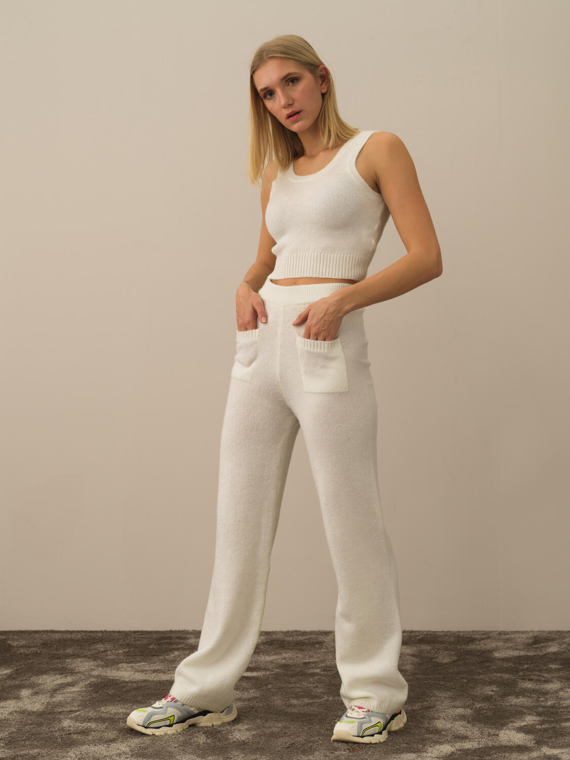Kırık Beyaz Lüks Pamuk Dokulu Regular Fit Pantolon