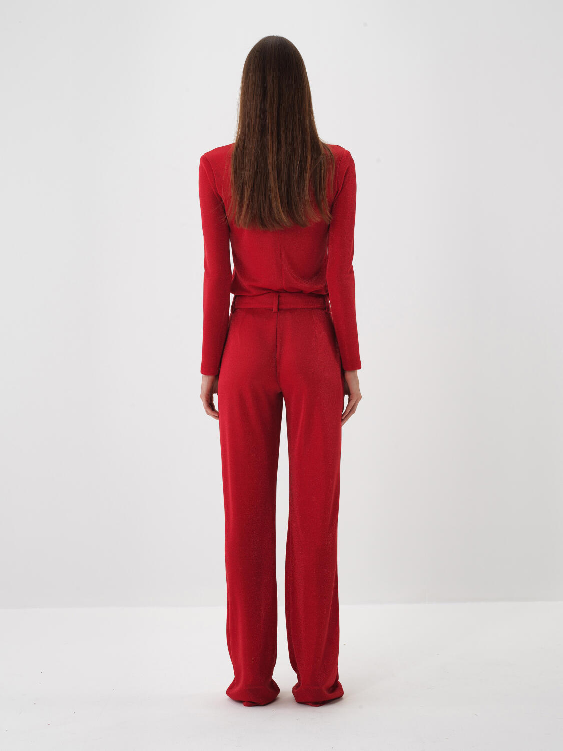 Kırmızı Işıltılı Sim Detaylı Regular Fit Pantolon
