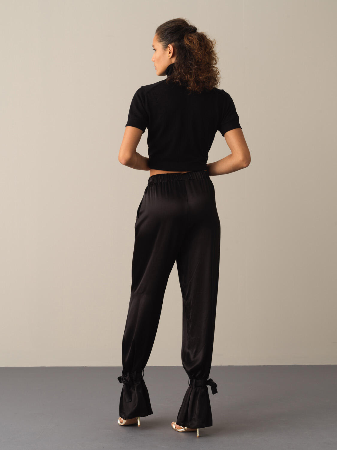 Siyah Pamuk Dokulu Regular Fit Saten Pantolon