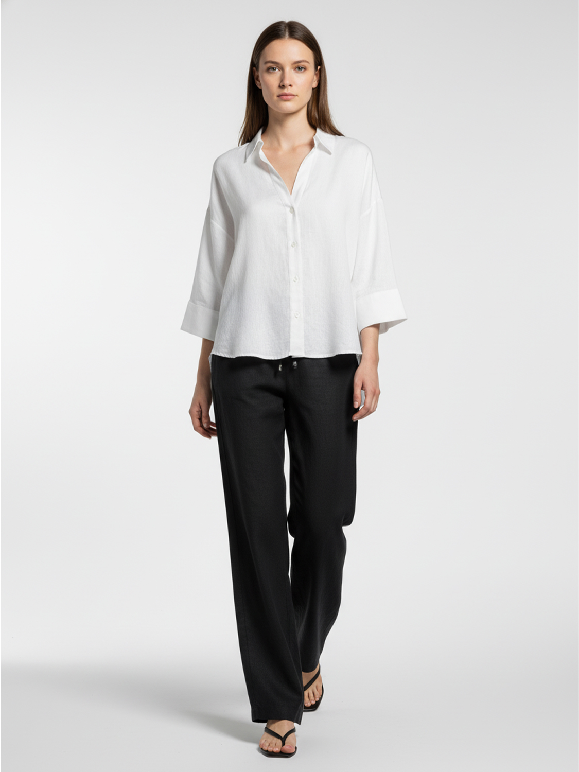 Siyah %100 Keten Oversize Pantolon