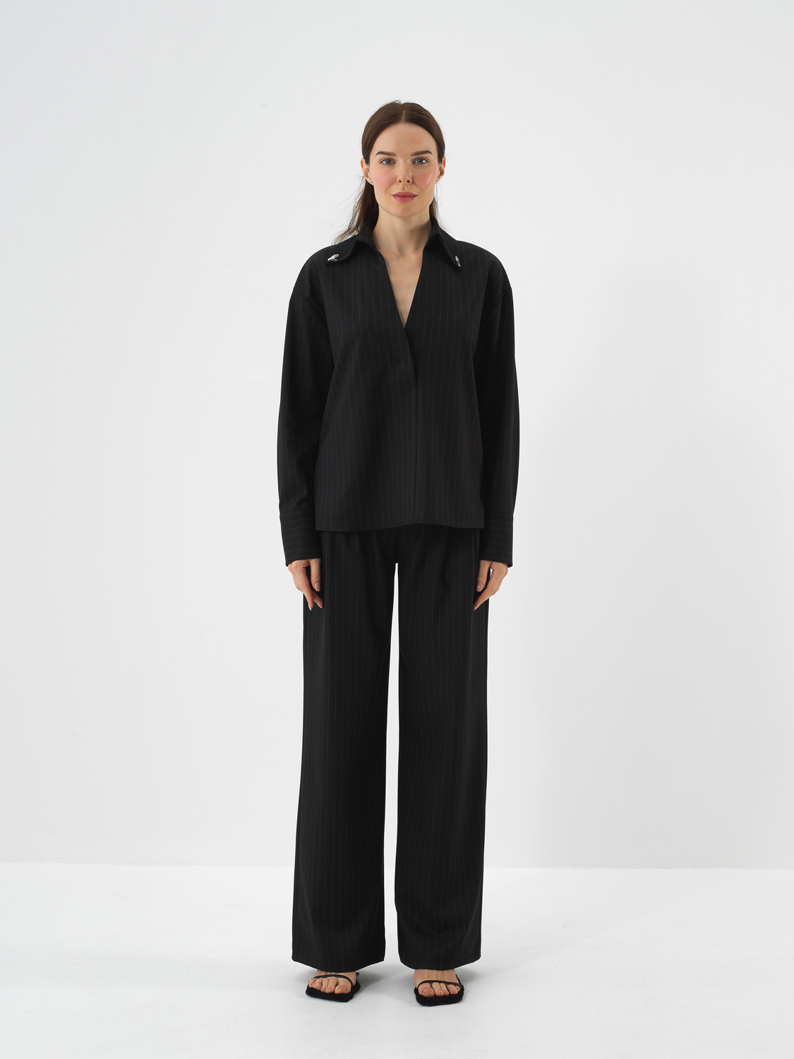 Siyah Esnek Dokulu Oversize Pantolon
