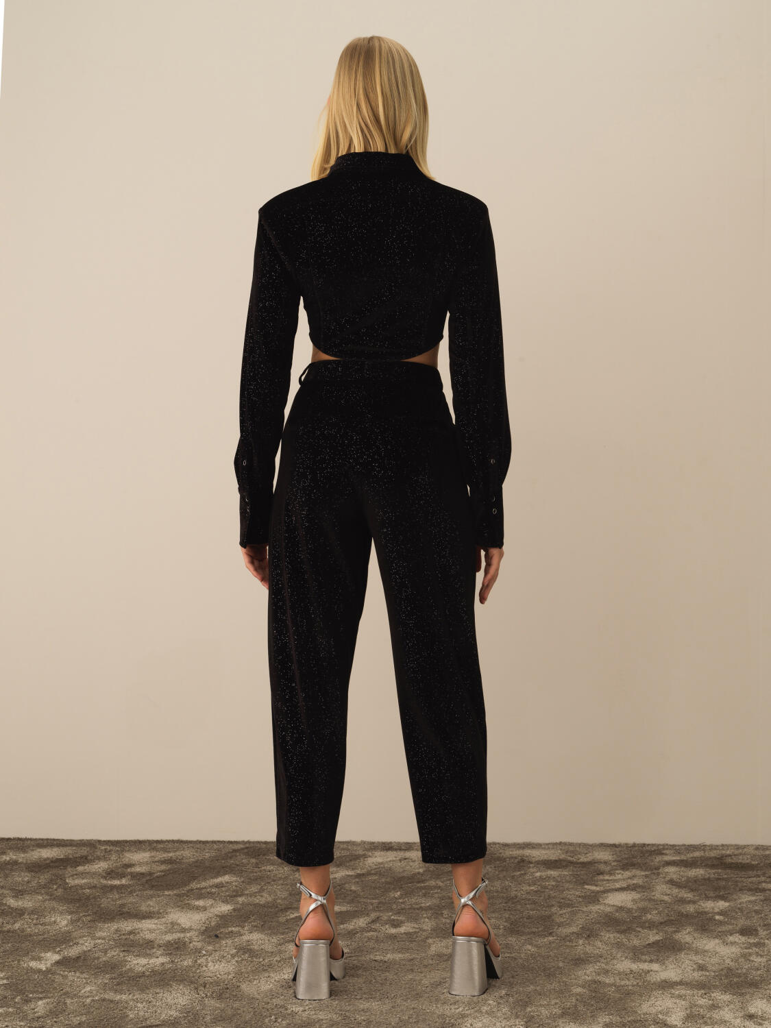 Siyah Esnek Dokulu Oversize Pantolon - Xint