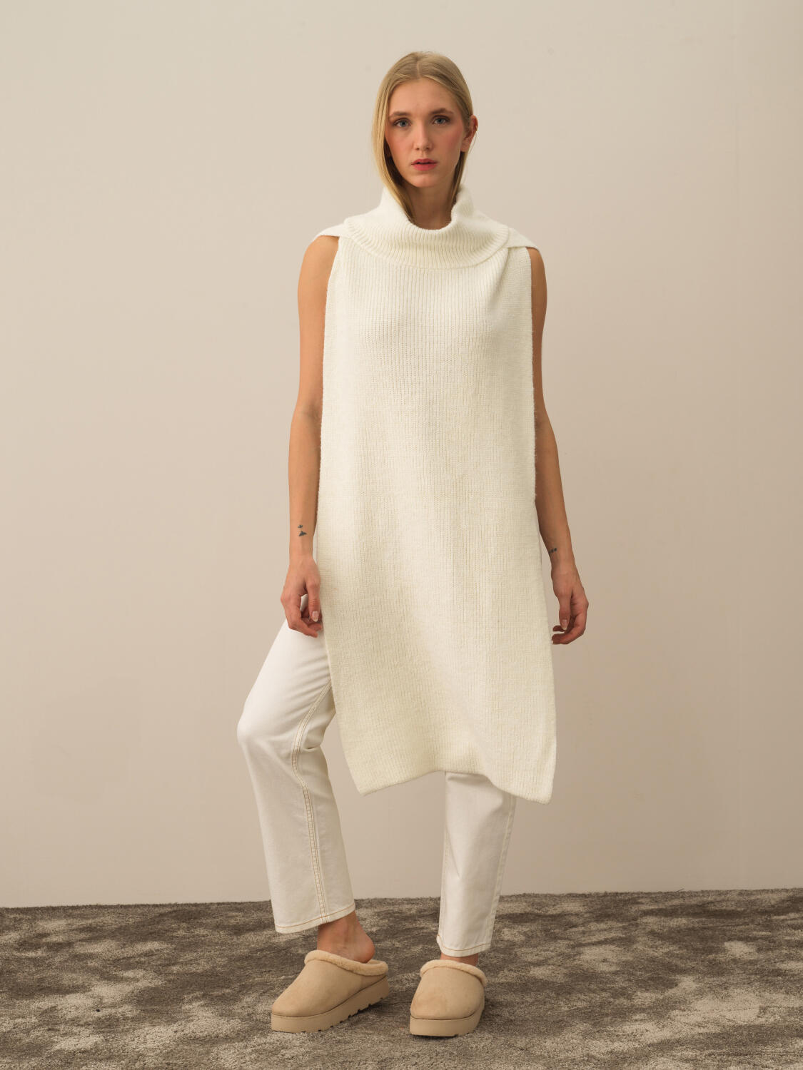 Ekru Doğal Yün Dokulu Regular Fit Pelerin