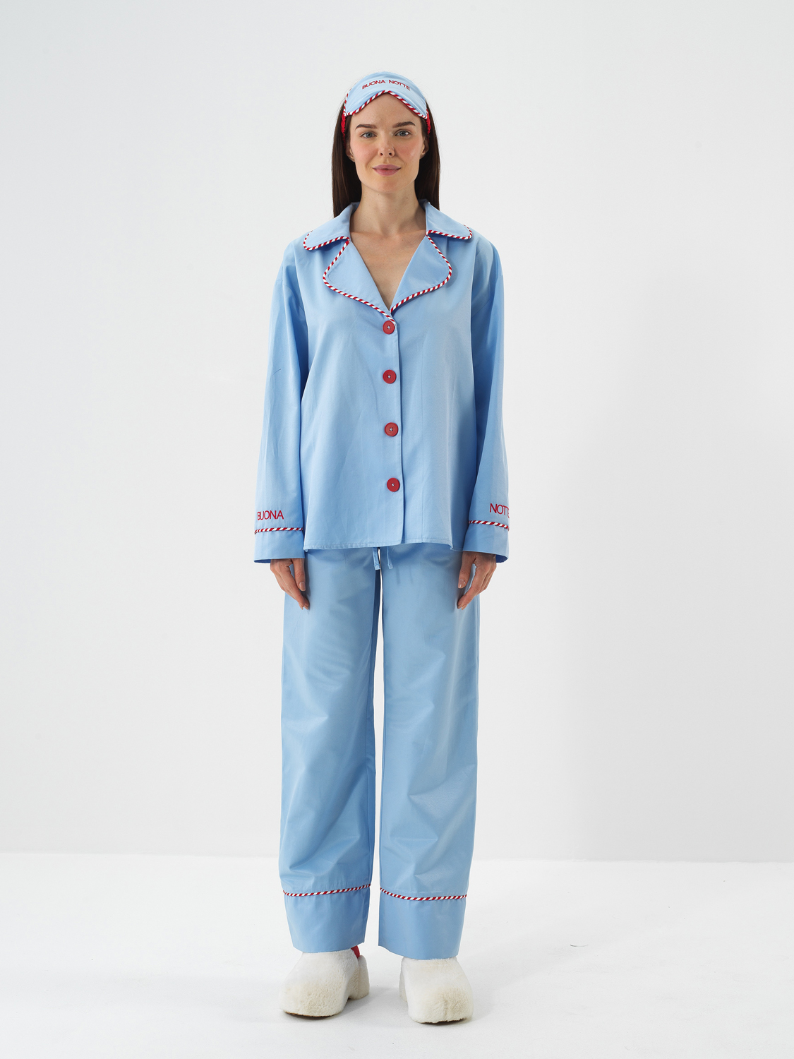 Mavi İpeksi Saten Oversize Pijama Seti