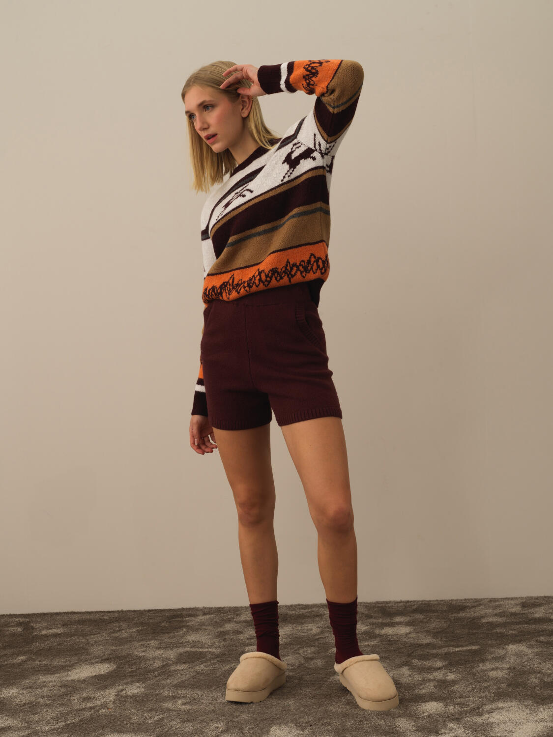 Bordo Doğal Yün Dokulu Regular Fit Şort