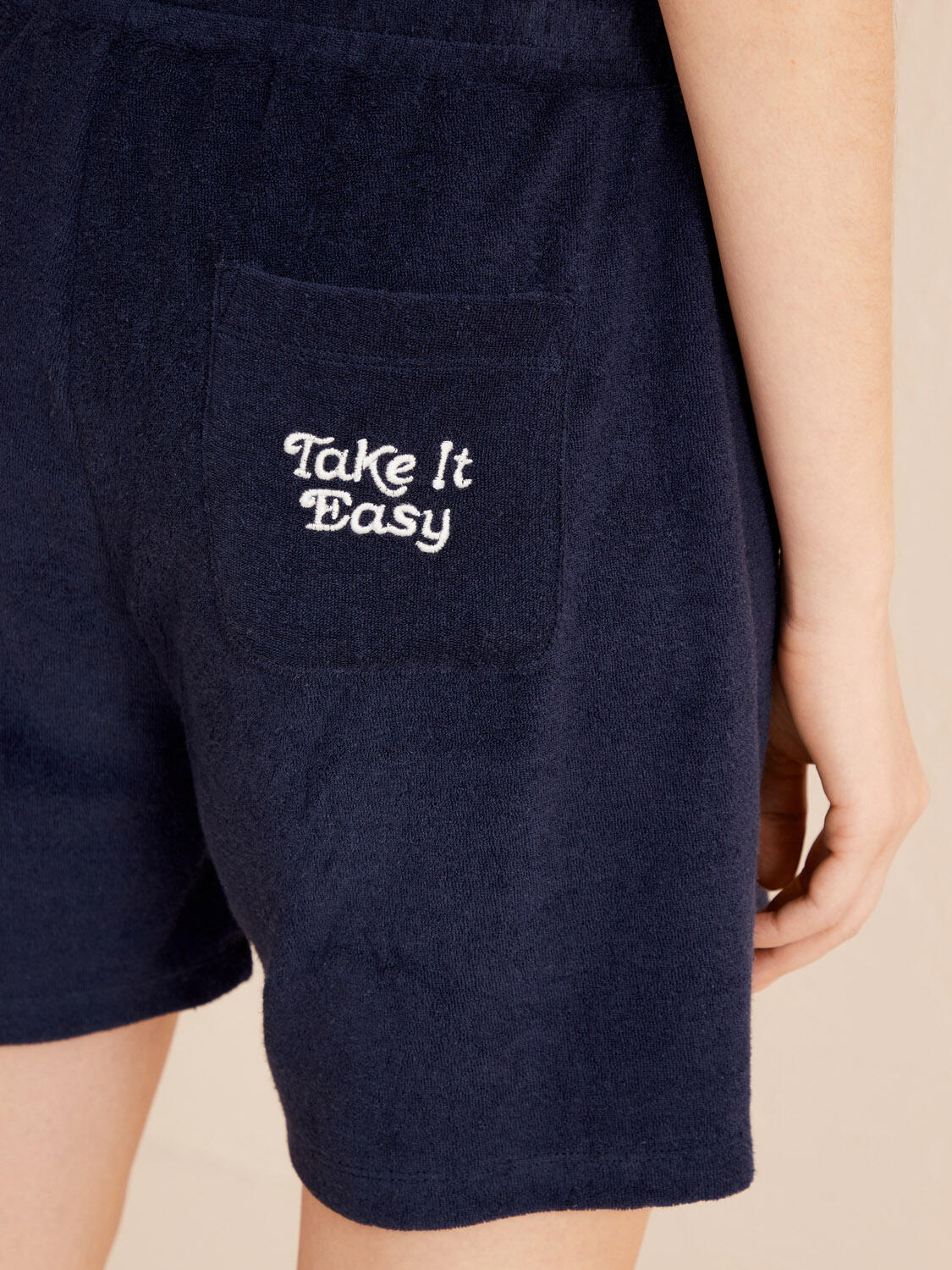 Lacivert Regular Fit Pamuklu Havlu Şort