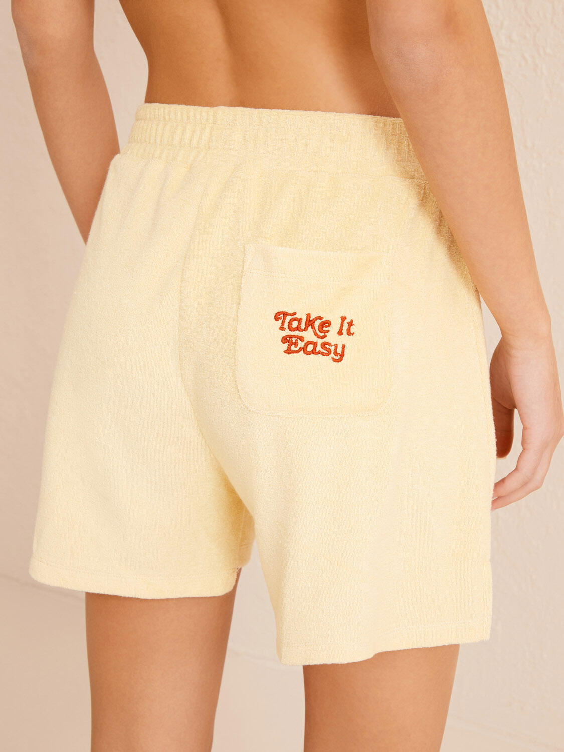 Sarı Regular Fit Pamuklu Havlu Şort