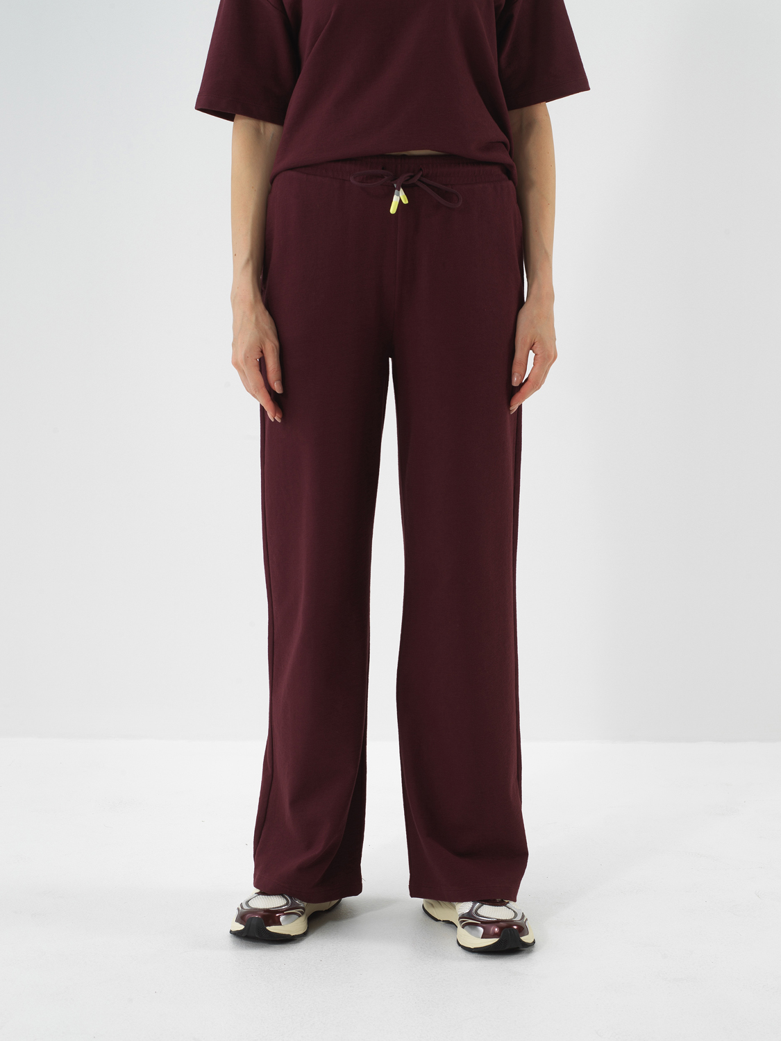 Bordo Pamuk Dokulu Oversize Sweat Pantolon
